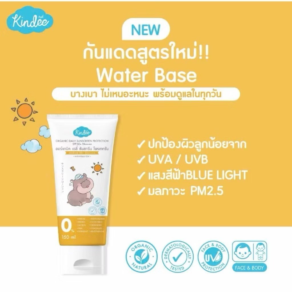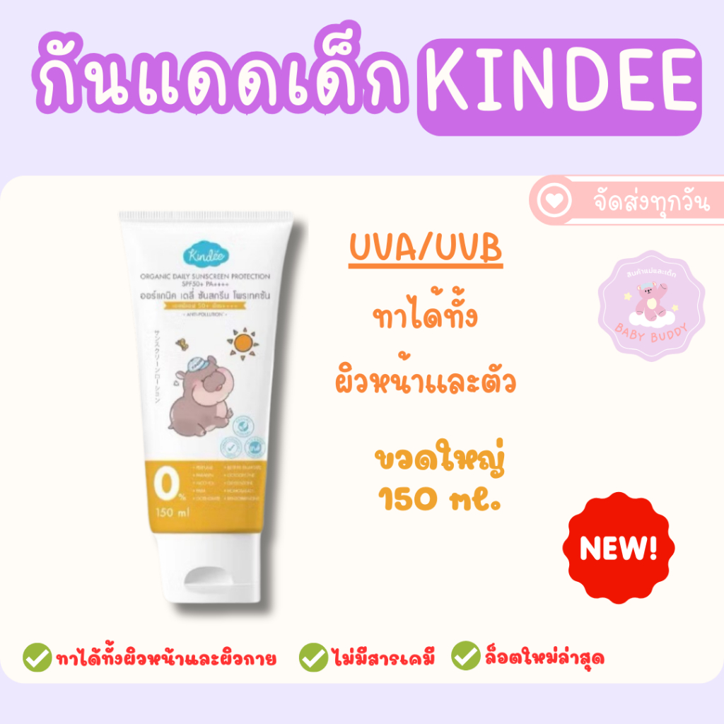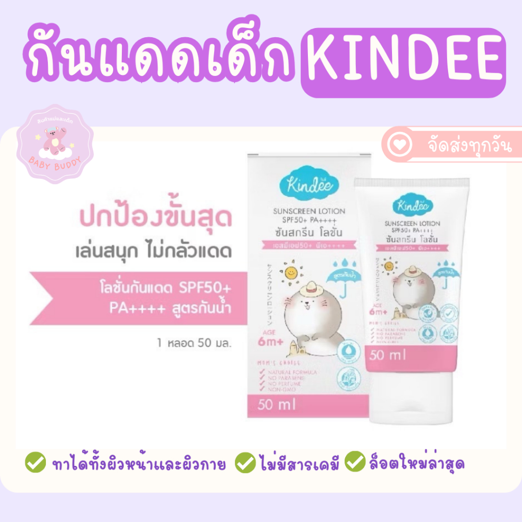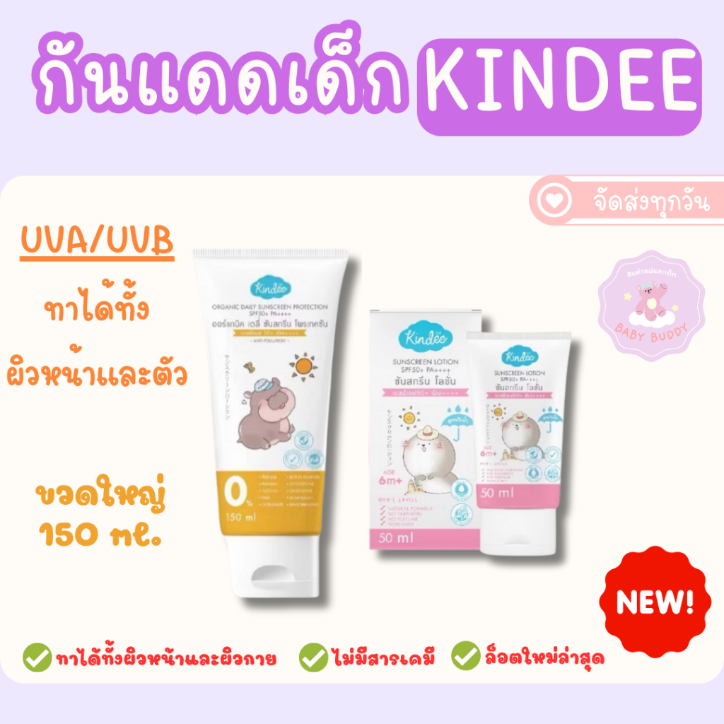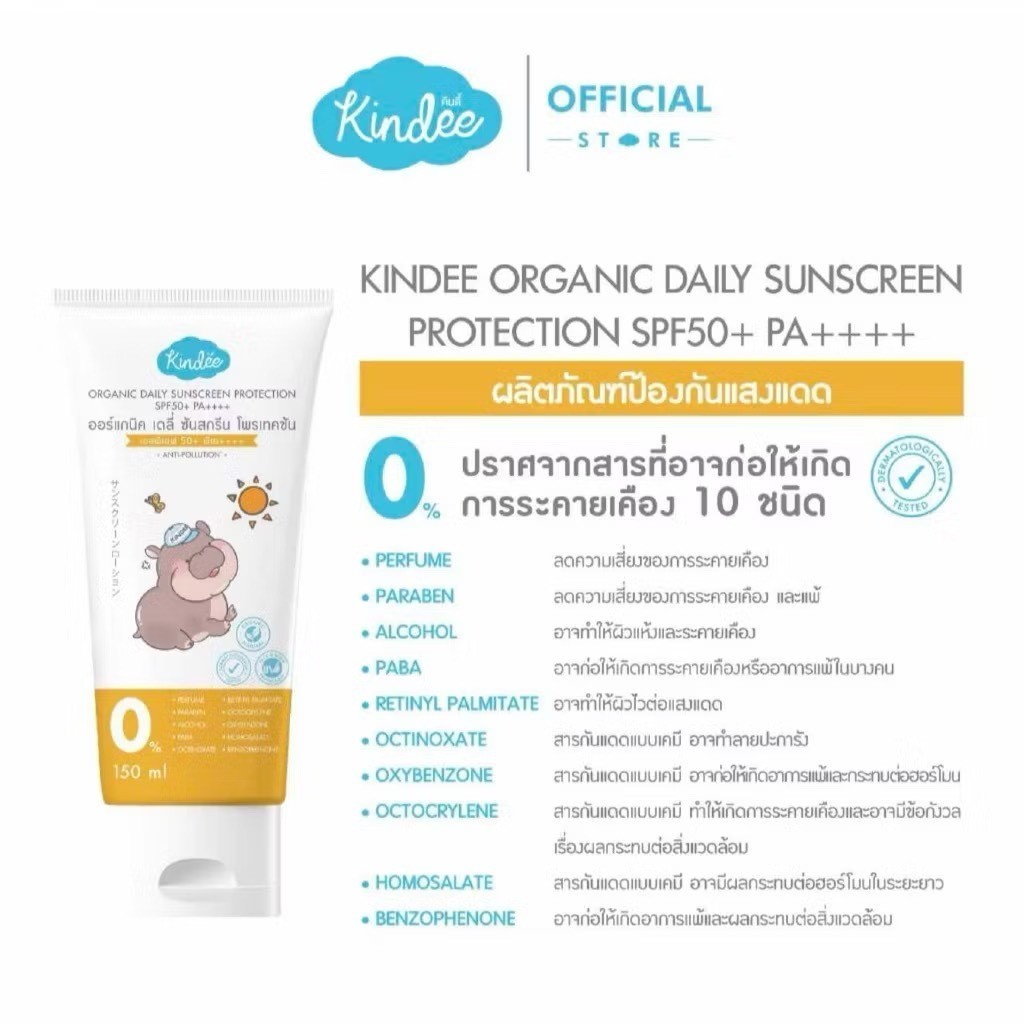 ส่งด่วนภายในวัน Kindee คินดี้ โลชั่นกันแดด ออร์แกนิค สำหรับเด็ก 6 เดือนขึ้นไป SPF50PA++++/SPF40PA+++