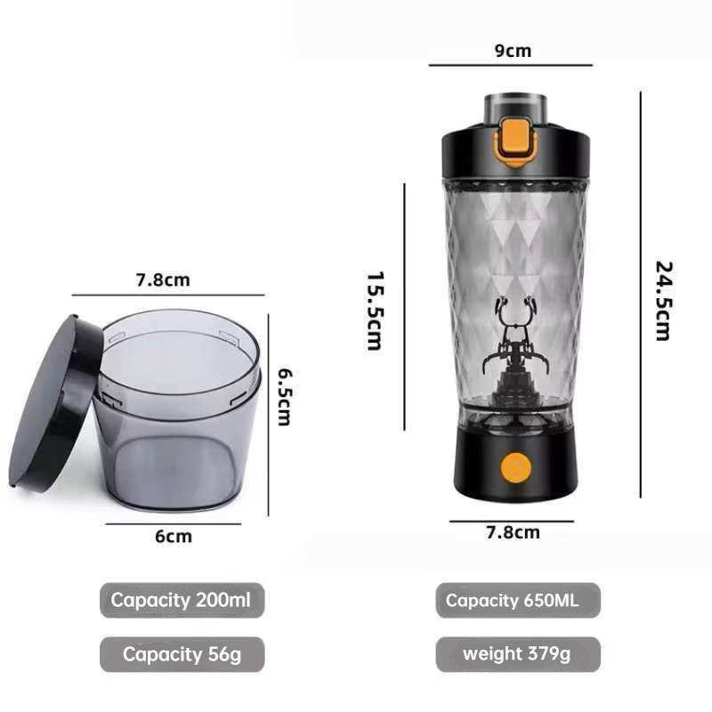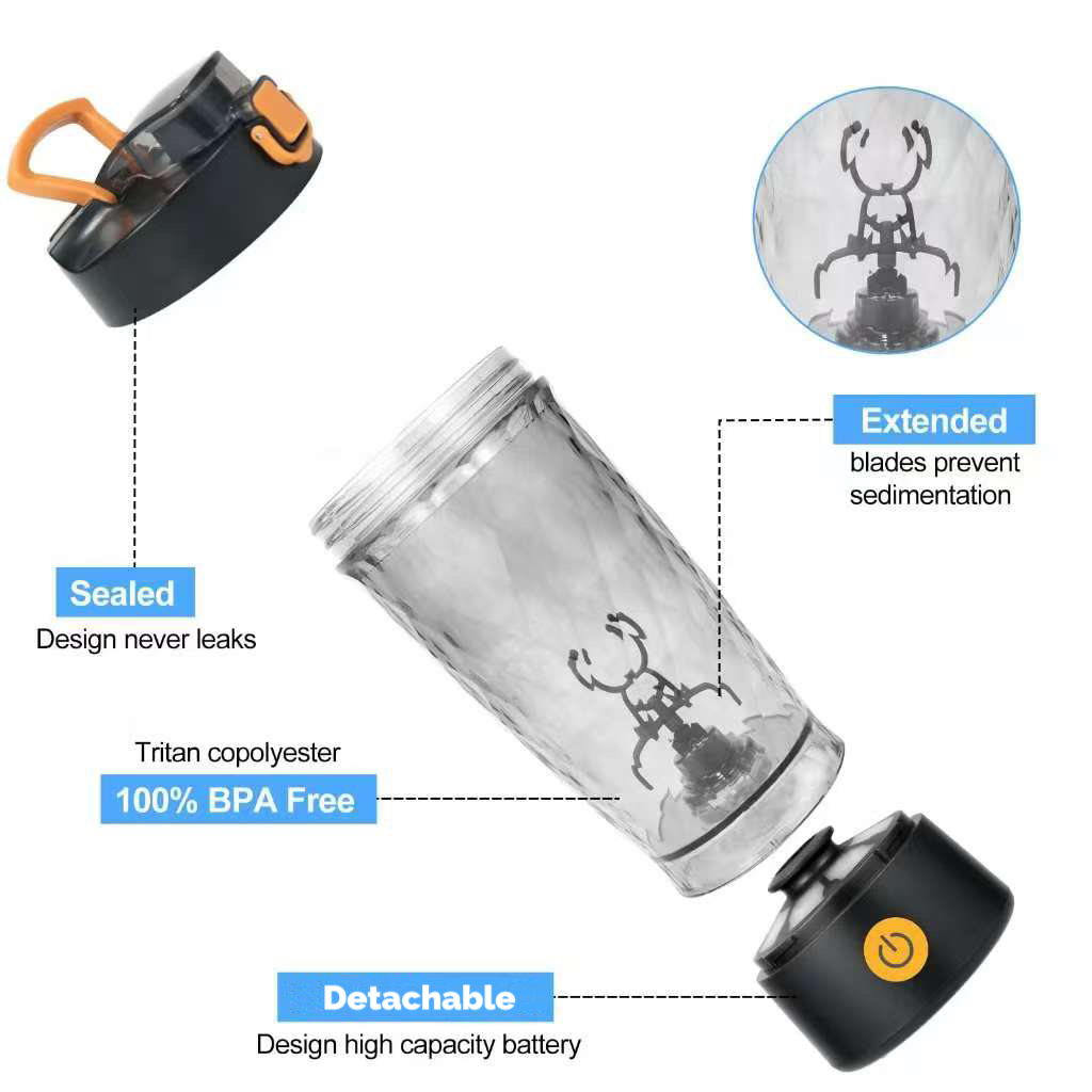 【รุ่นที่สาม】2024 เครื่องปั่นไฟฟ้าขวดผงโปรตีน Shaker ถ้วยเครื่องปั่นขวดฟิตเนสกีฬาถ้วยน้ํา Type-C ชาร์จ Milkshake ถ้วย Shracker