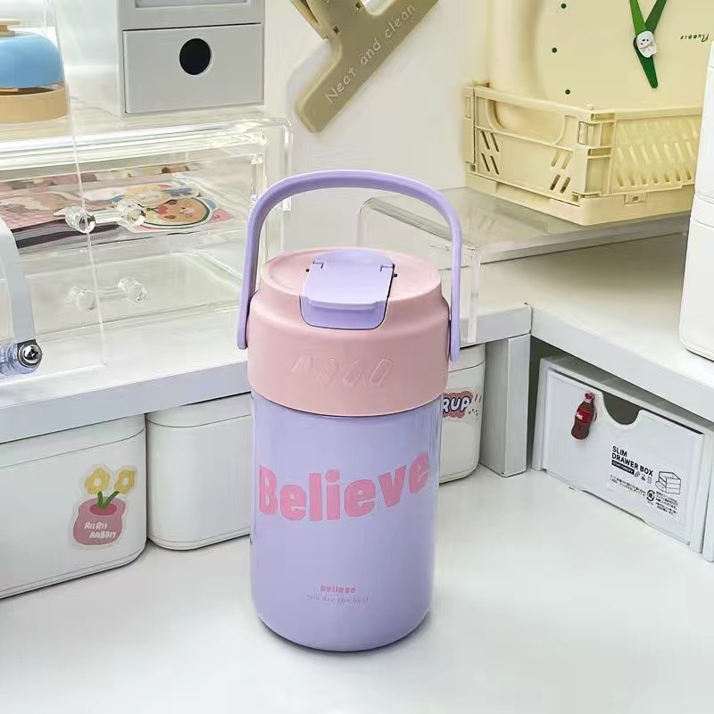 [พร้อมส่ง] กระติกน้ําร้อน ชา กาแฟ แบบพกพา พร้อมที่จับ สําหรับนักเรียนหญิง
