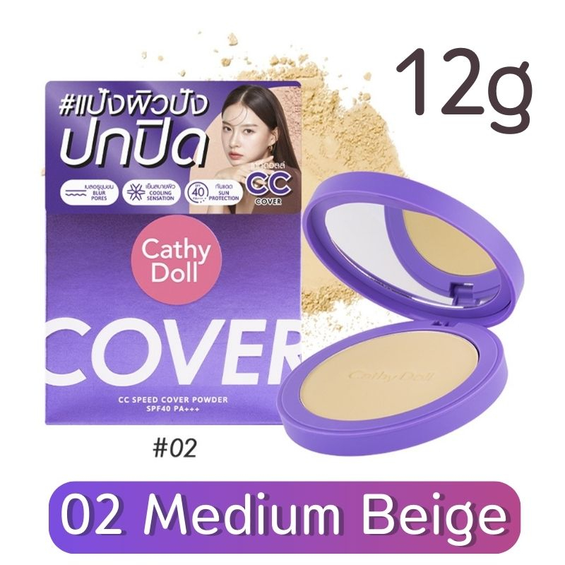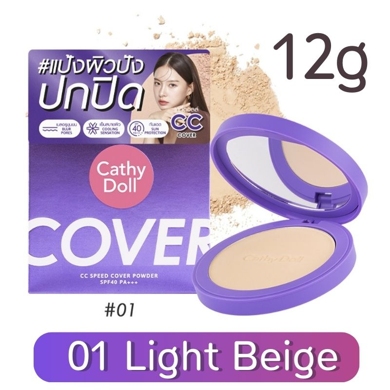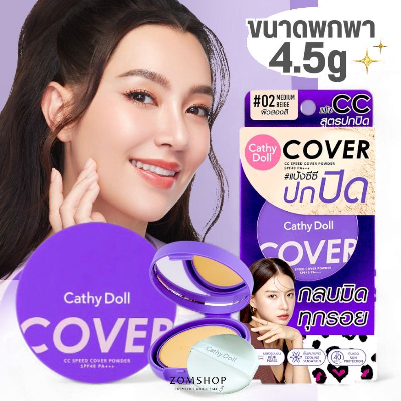 【ตลับสีม่วง】CC แป้งตลับผสมรองพื้น【ปกปิด คุมมัน 】CATHY DOLL CC SPEED COVER POWDER SPF40 PA+++