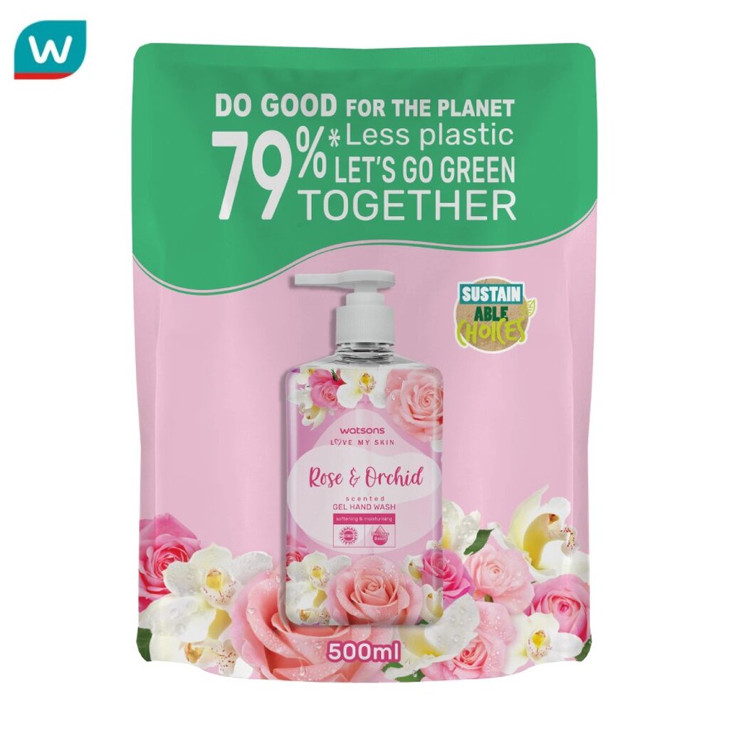 Watsons วัตสัน เลิฟ มาย สกิน โรส แอนด์ ออร์คิด เซ็นทิด เจล แฮนด์ วอช 500มล.(รีฟิล)