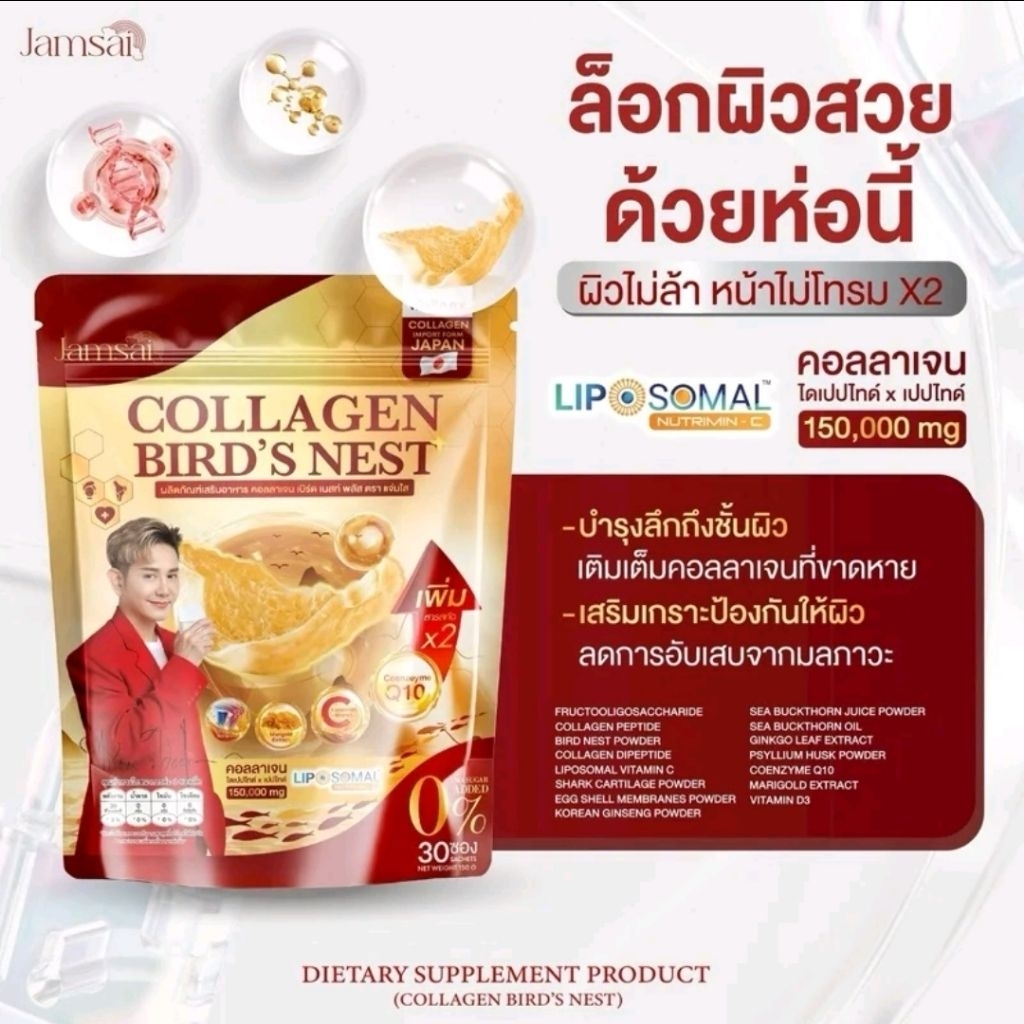 (🐦พร้อมส่ง แพคเกจใหม่❗️) แท้💯📍 รังนกคอลลาเจนแจ่มใส Jamsai ไม่มีน้ำตาล บำรุงข้อเข่า กระดูก คอลลาเจน ลดฝ้า