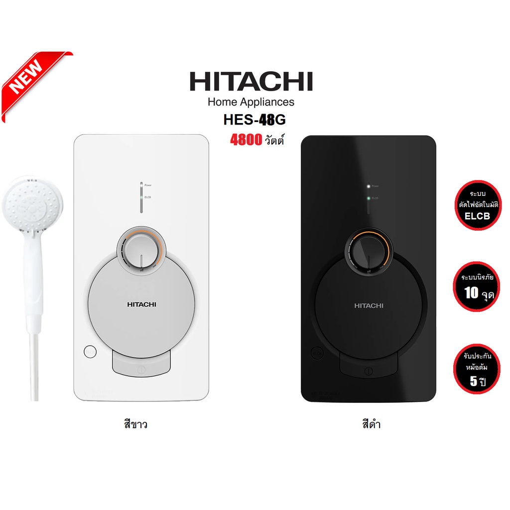 HITACHI เครื่องทำน้ำอุ่น รุ่น HES 48G 4800 วัตต์ สีขาว / สีดำ (รับประกันศูนย์ หม้อต้ม 5ปี)