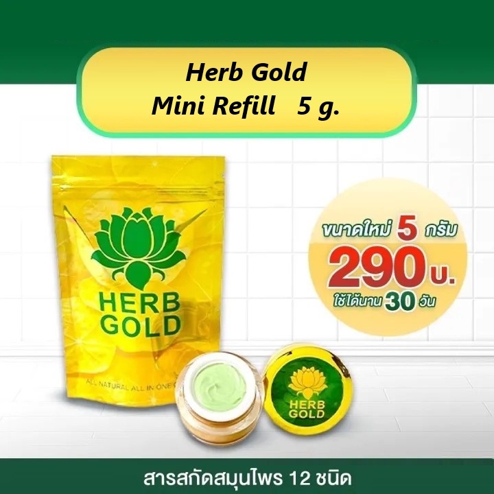 HERB GOLD refill 5g. ครีมมินิรีฟิลเฮิร์บโกล์ด ครีมเฮิร์บโกล์ด รีฟิลขนาด 5 กรัม