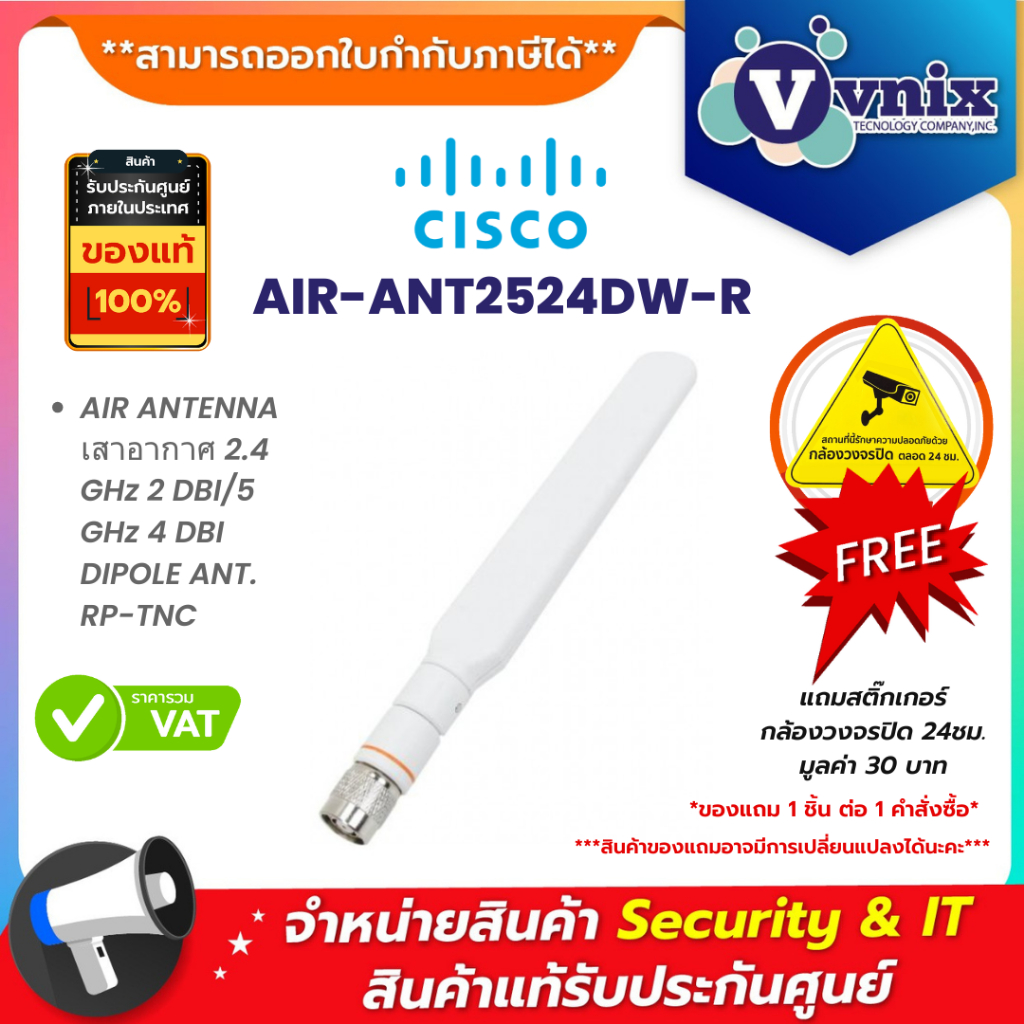 Cisco AIR-ANT2524DW-R AIR ANTENNA เสาอากาศ 2.4 GHz 2 DBI/5 GHz 4 DBI DIPOLE ANT. RP-TNC By Vnix Group