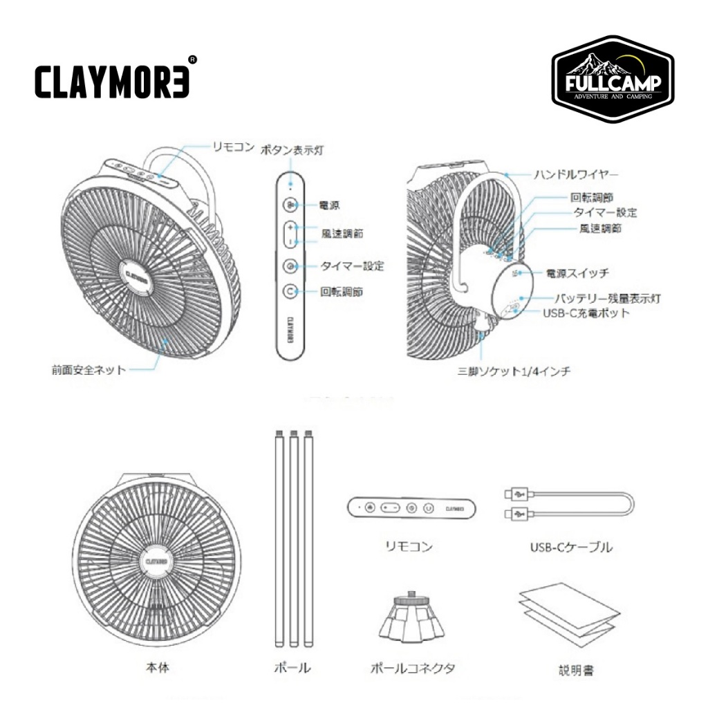Claymore Fan V1500 พัดลมตั้งพื้น พกพา แบบแขวน พัดลมเเคมป์ไร้สาย พัดลมแบบพกพา