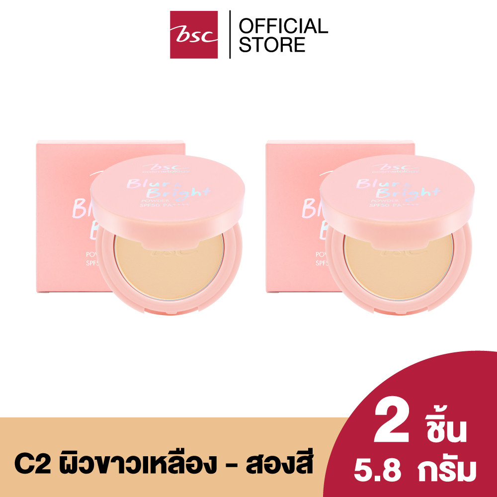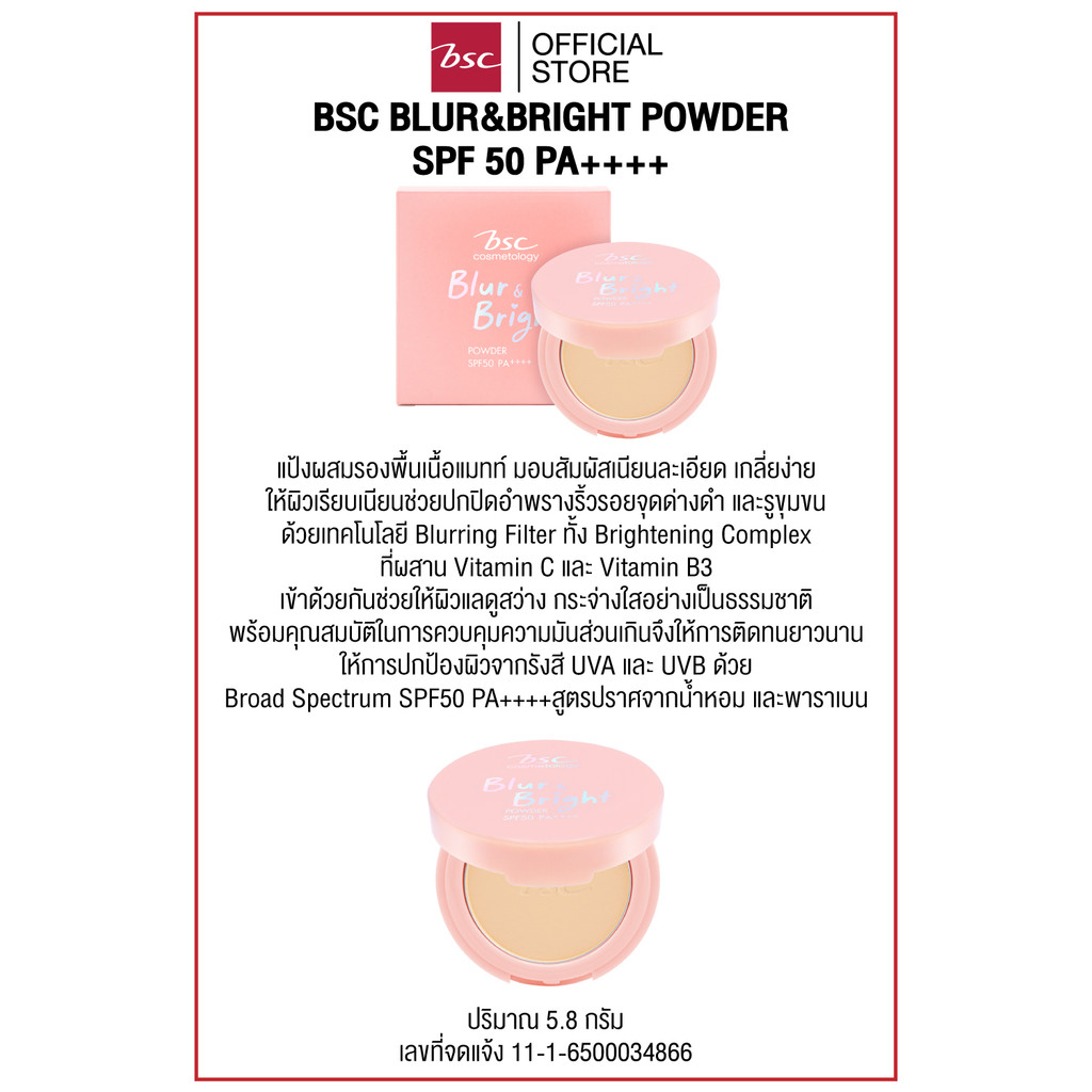 [ SET 2 ชิ้น ] BSC BLUR&BRIGHT POWDER SPF 50 PA++++ บีเอสซี เบลอ & ไบรท์ พาวเดอร์ เอสพี่เอฟ50 พี่เอ++++ แป้งผสมรองพื้น