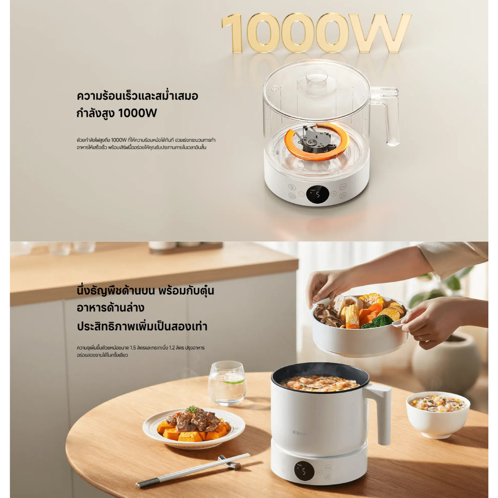 Xiaomi Multifunction Cooker 1.5L หม้อไฟฟ้าอเนกประสงค์ กำลังไฟ 1000 วัตต์ ปรับได้ 5 ระดับ ประสิทธิภาพสูง