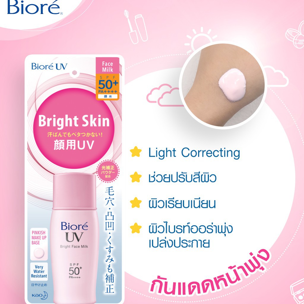 Biore บิโอเร ยูวีไบรท์เฟสครีม SPF50+++ (ขนาด 30 มล./สีชมพู)
