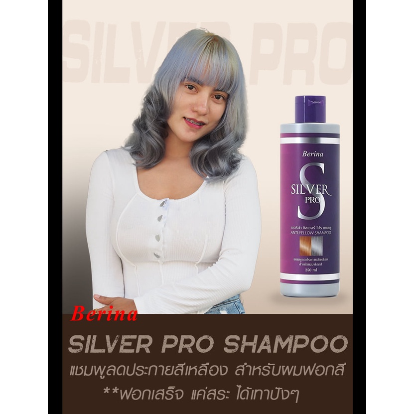 แชมพูม่วง เบอริน่า ซิลเวอร์ โปร Berina Silver Pro Anti Yellow Shampoo ล้างไรเหลือง สำหรับผมฟอกสี ผมสีเทา สระผม เบอรีน่า
