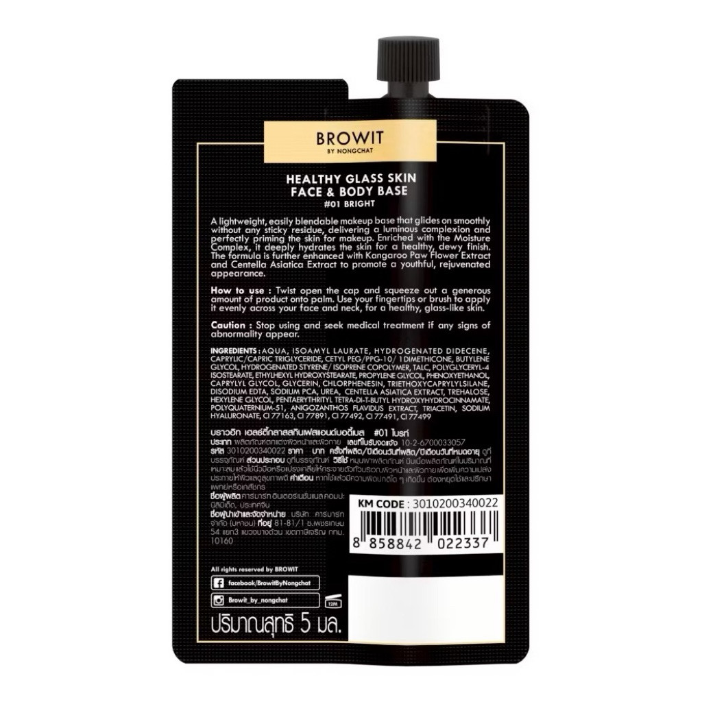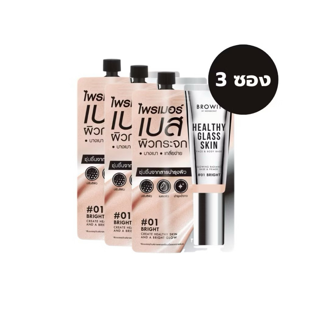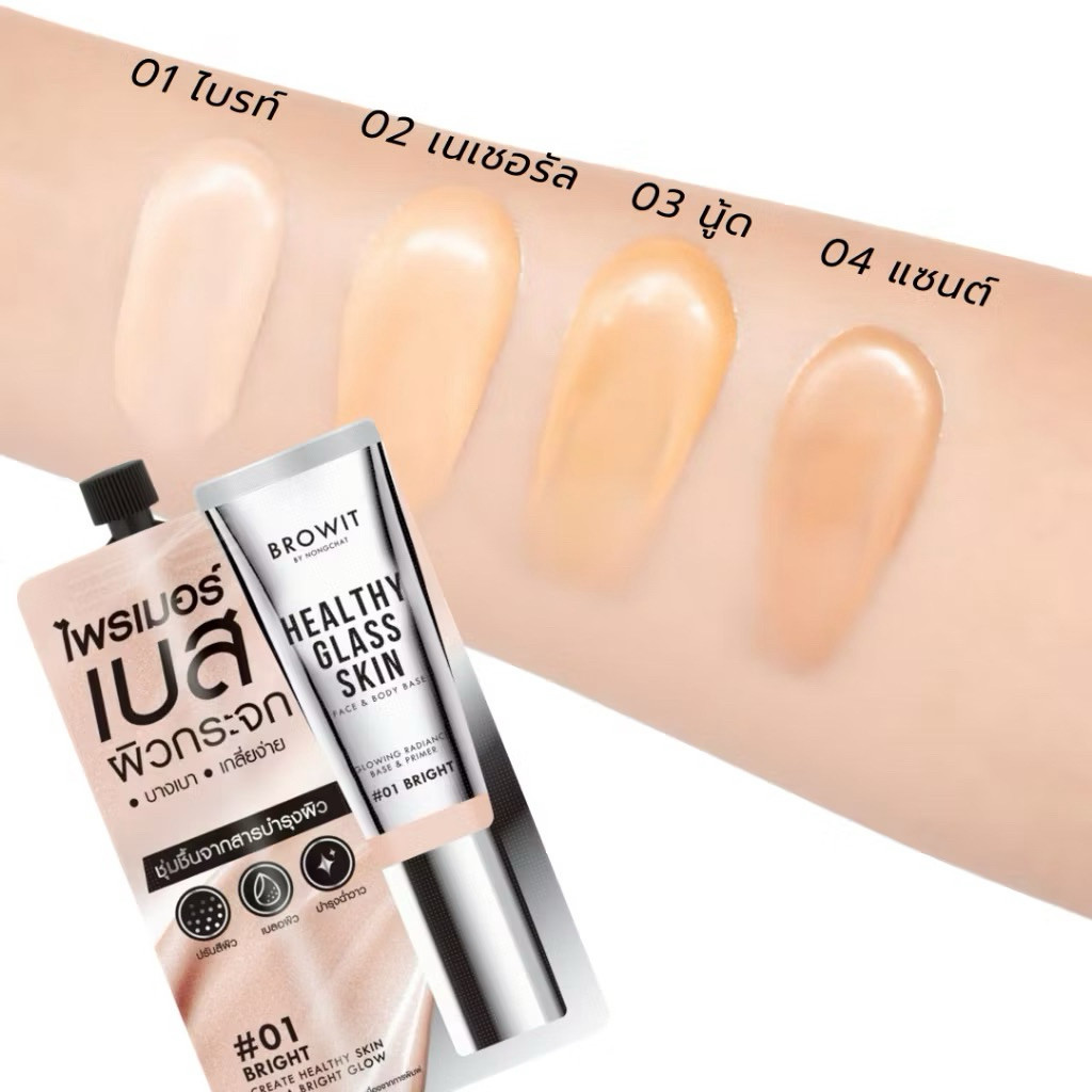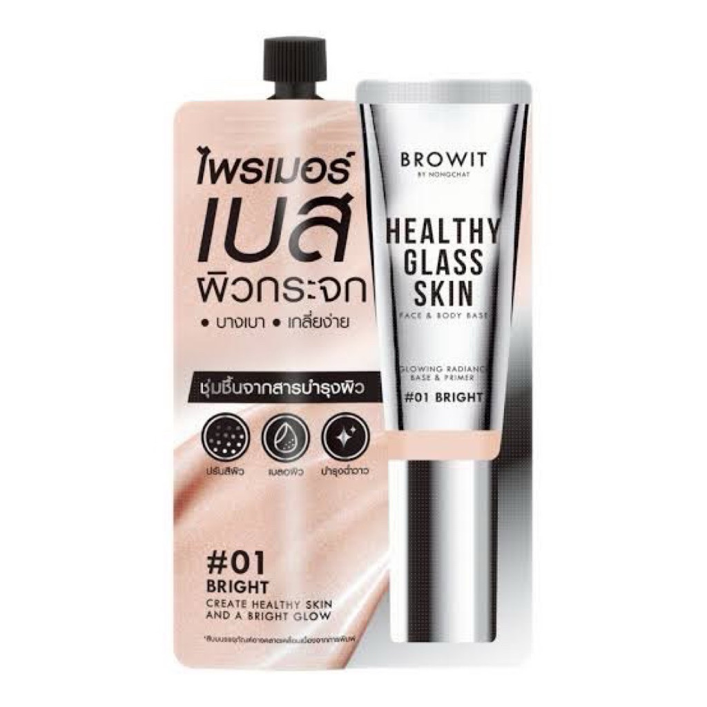 Browit Healthy Glass Skin- Base and Primer บราวอิท เฮลท์ตี้ ก ลาสสกิน เบส แอนด์ ไพร์มเมอร์ ชนิดซอง ขนาด 5ml