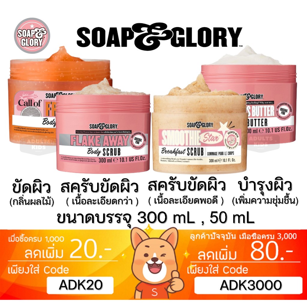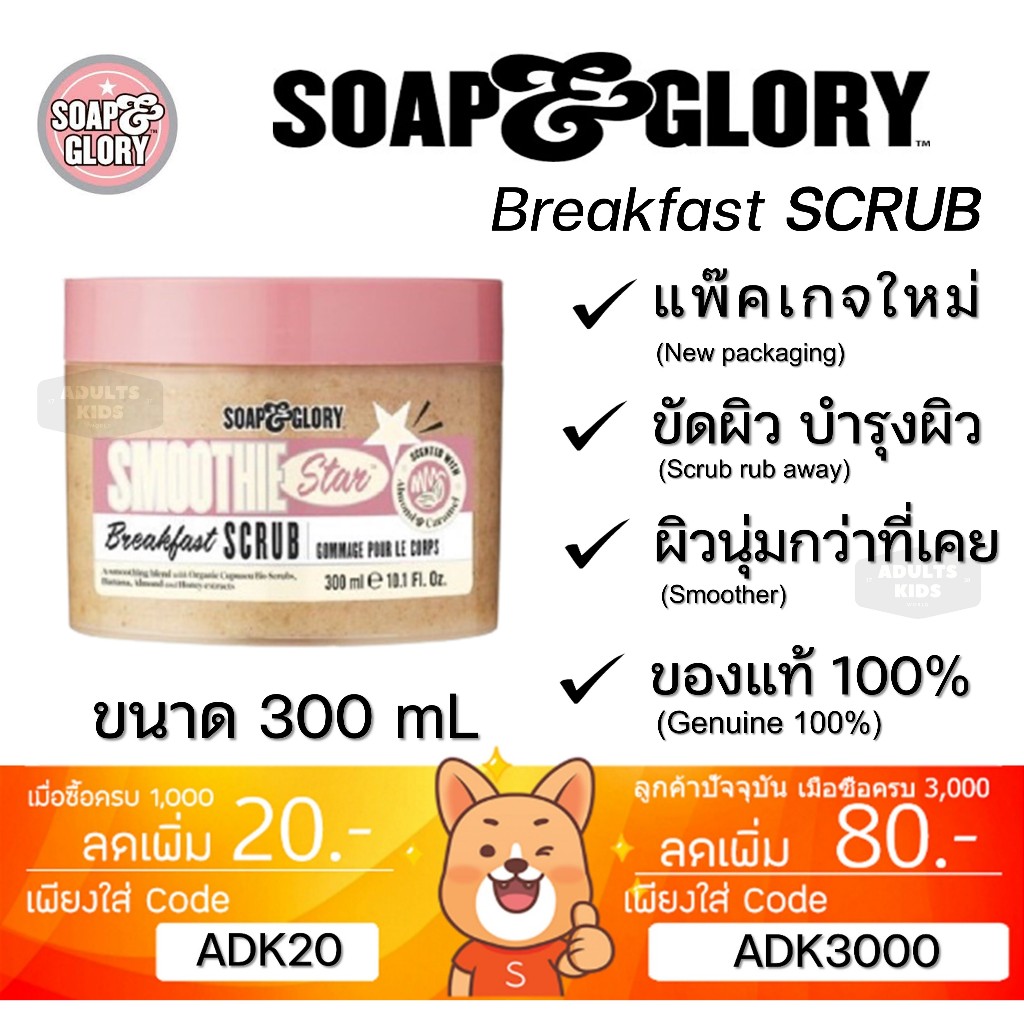 ลดเพิ่ม 30% 🔥 [ของแท้] SOAP & GLORY BREAKFAST SCRUB RIGHTEOUS BUTTER FLAKE AWAY Soap and glory โซพแอนด์กลอรี่