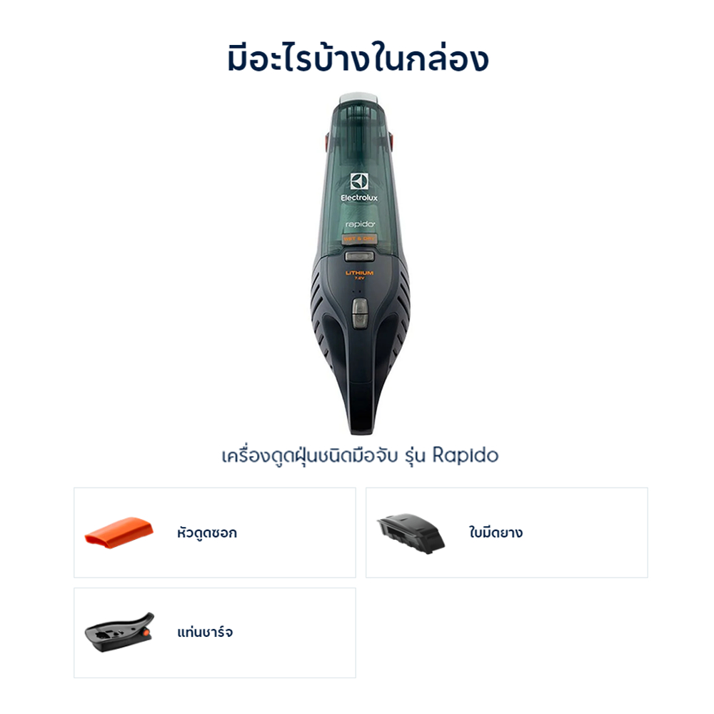Electrolux เครื่องดูดฝุ่นไร้สาย 7.2V Rapido รุ่น ZB6307DB