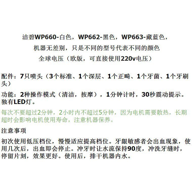 [ที่ต้องการ] American Waterpik Waterpik WP660 Waterpik Waterpik WP660 Waterpik Flosser ในครัวเรือนรุ่นยุโรป Daigou NARN