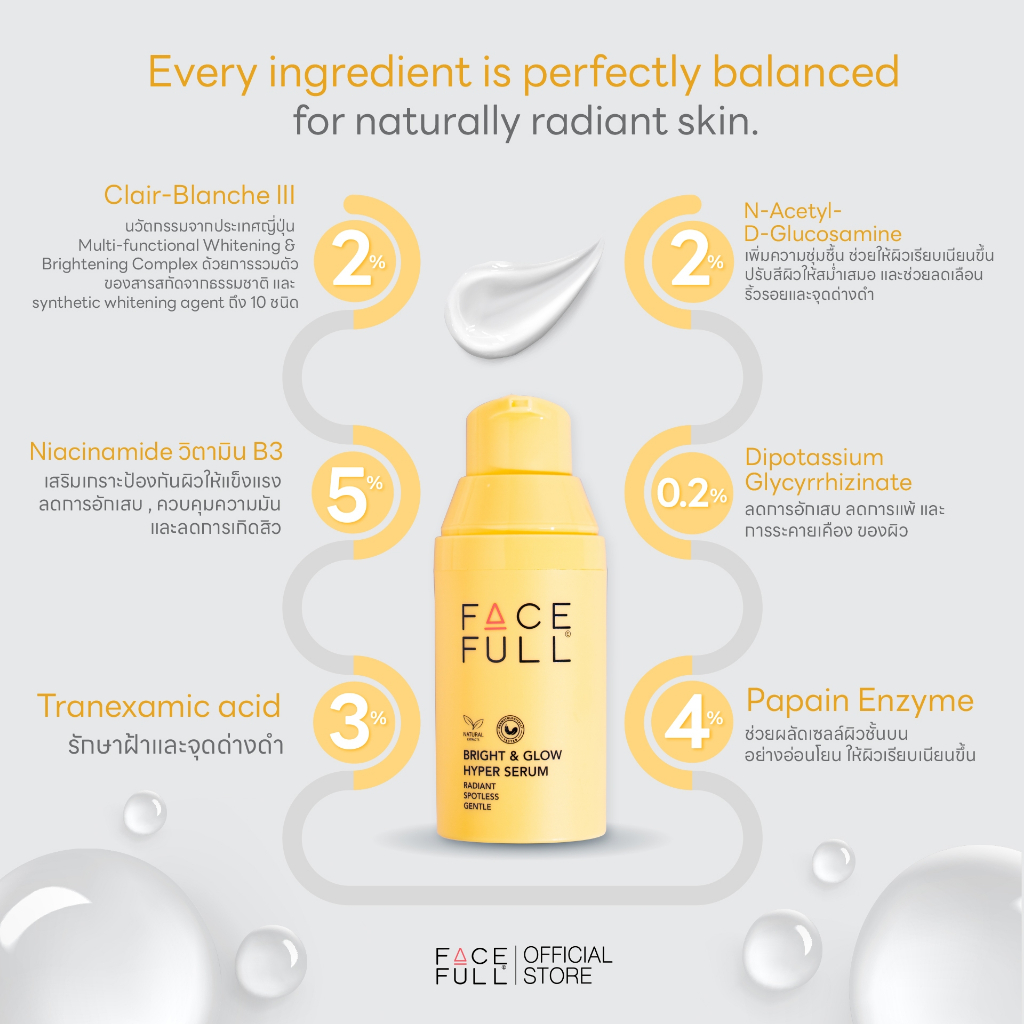 FACE FULL BRIGHT&GLOW HYPER SERUM เซรั่มบำรุงผิวหน้าสูตรอ่อนโยน (gentle)