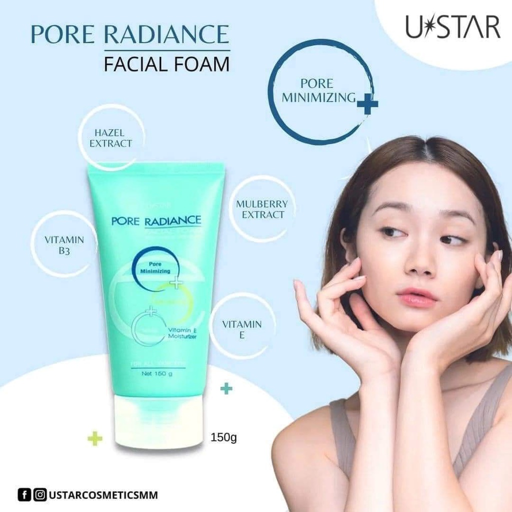 Ustar Pore Radiance Facial Foam 150g. ยูสตาร์ พอร์ เรเดียนซ์ เฟเชี่ยล โฟม 150กรัม.