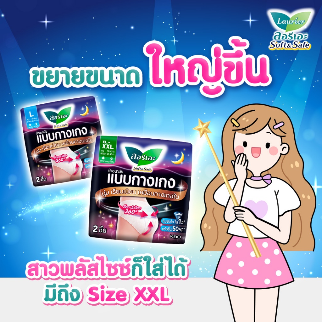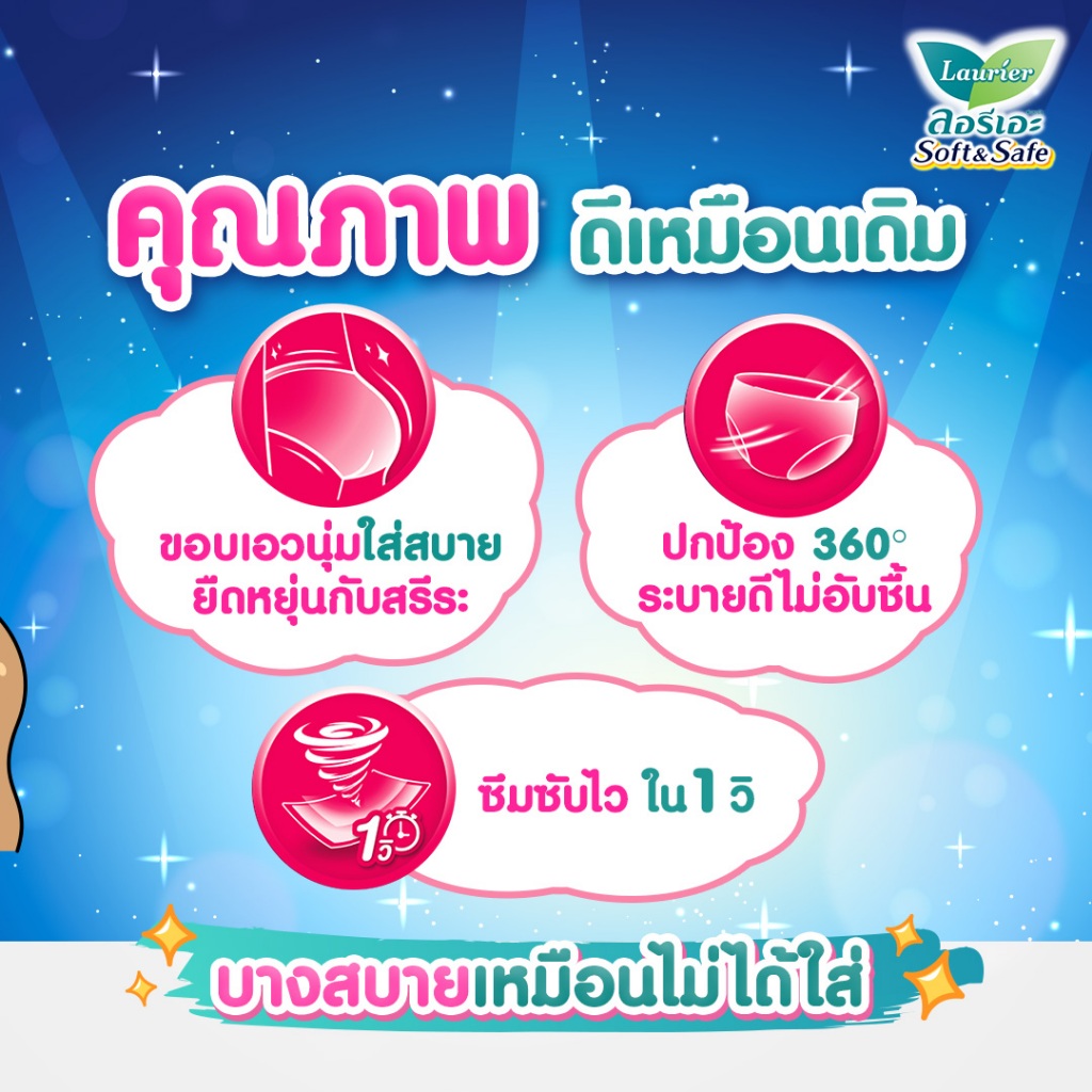 Laurier ลอรีเอะ ผ้าอนามัยแบบกางเกง ซอฟท์&เซฟ แบบ 2 ชิ้น ซึมซับไว