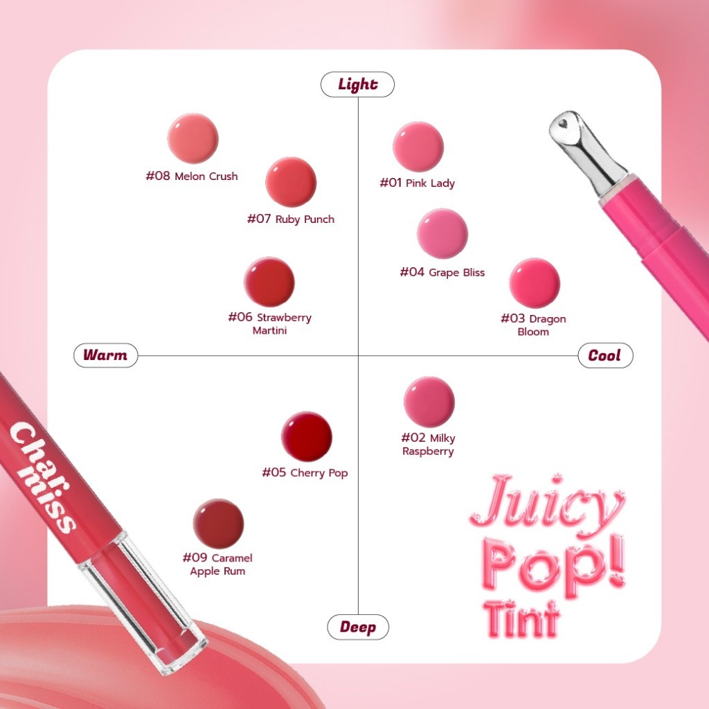 🔥แท้/ดีลสุดคุ้ม/ไลฟ์ทุกวัน🔥(1ชิ้น) CHARMISS JUICY POP TINT ลิปทินท์กลอสหัวเหล็ก (M)