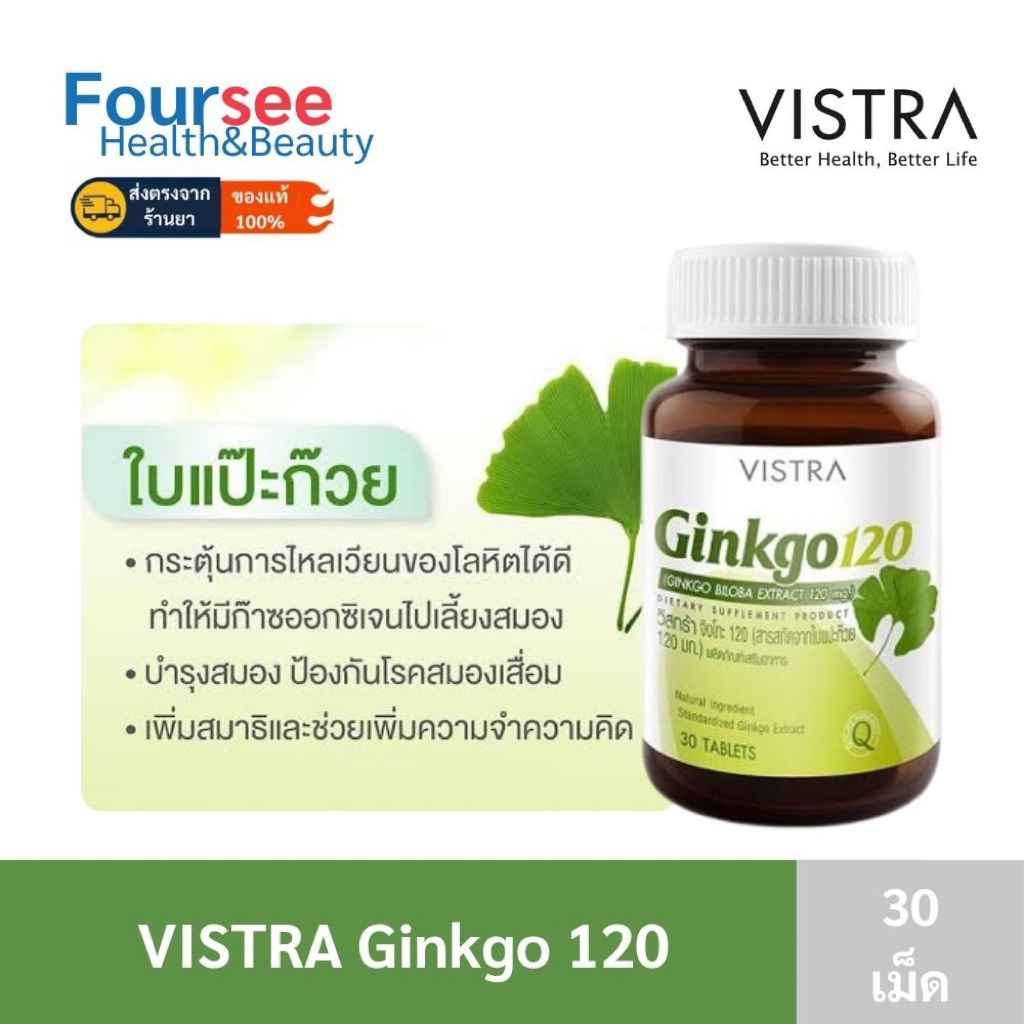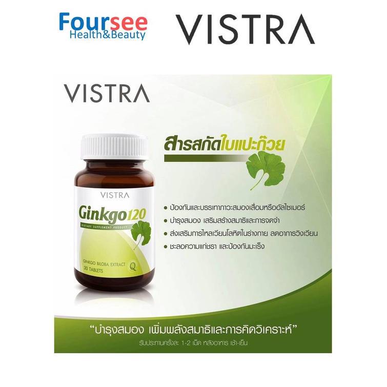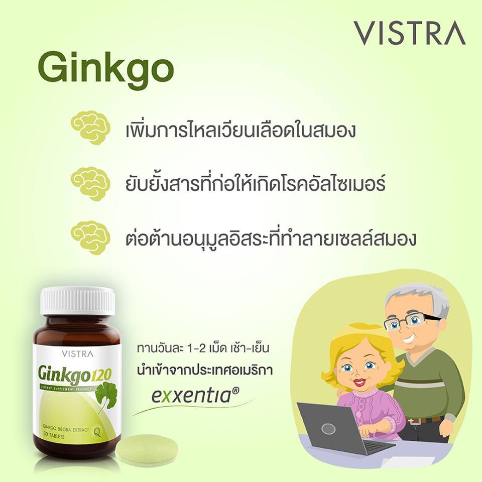 VISTRA ginkgo biloba 120 mg 30 เม็ด วิสทร้า กิงโกะ สารสกัดใบแปะก๊วย 120 มิลลิกรัม เพิ่มสมาธิ