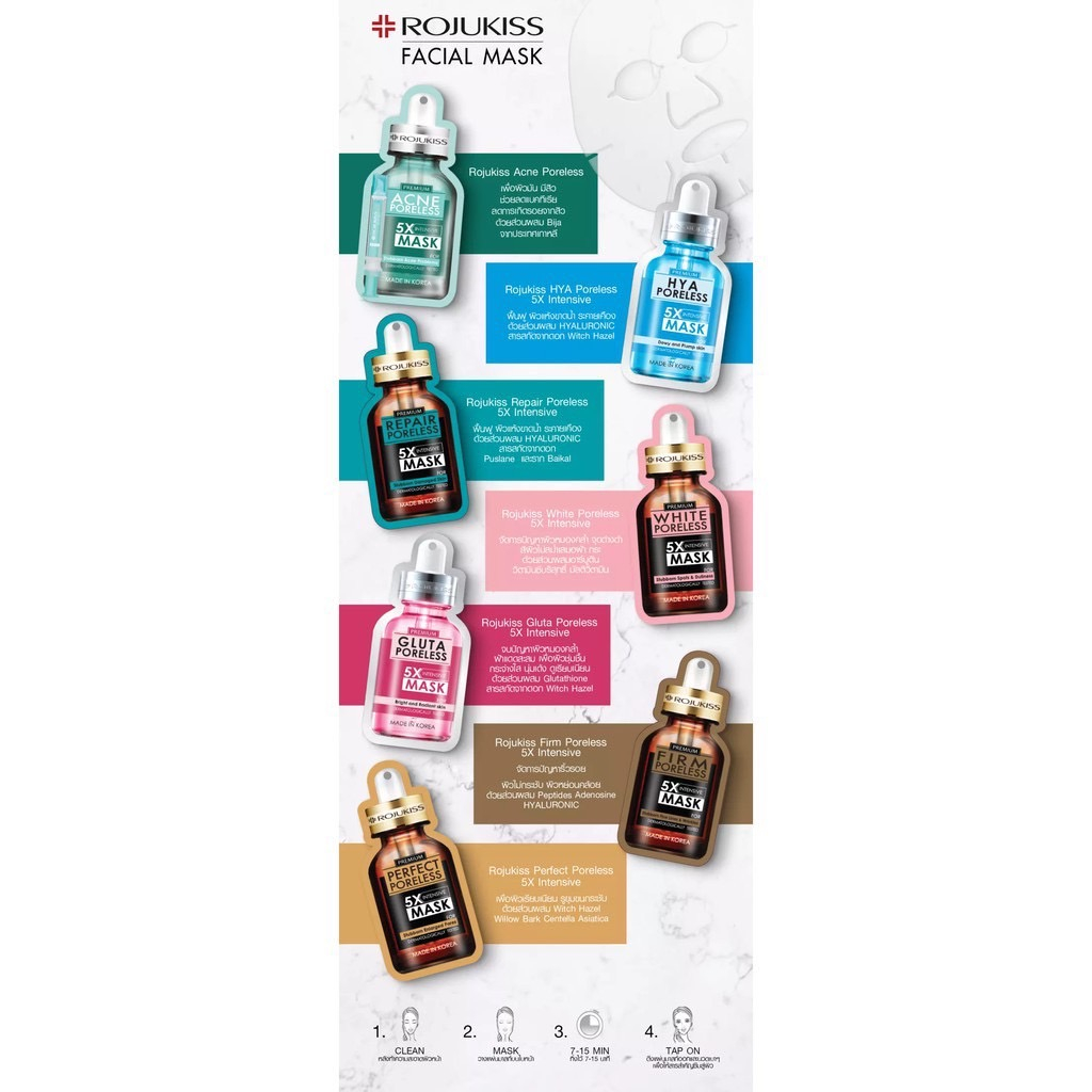 มาสก์ Rojukiss Mask มาสก์โรจูคิส Firm Perfect White Repair Acne มาสก์หน้า มาส์กหน้า