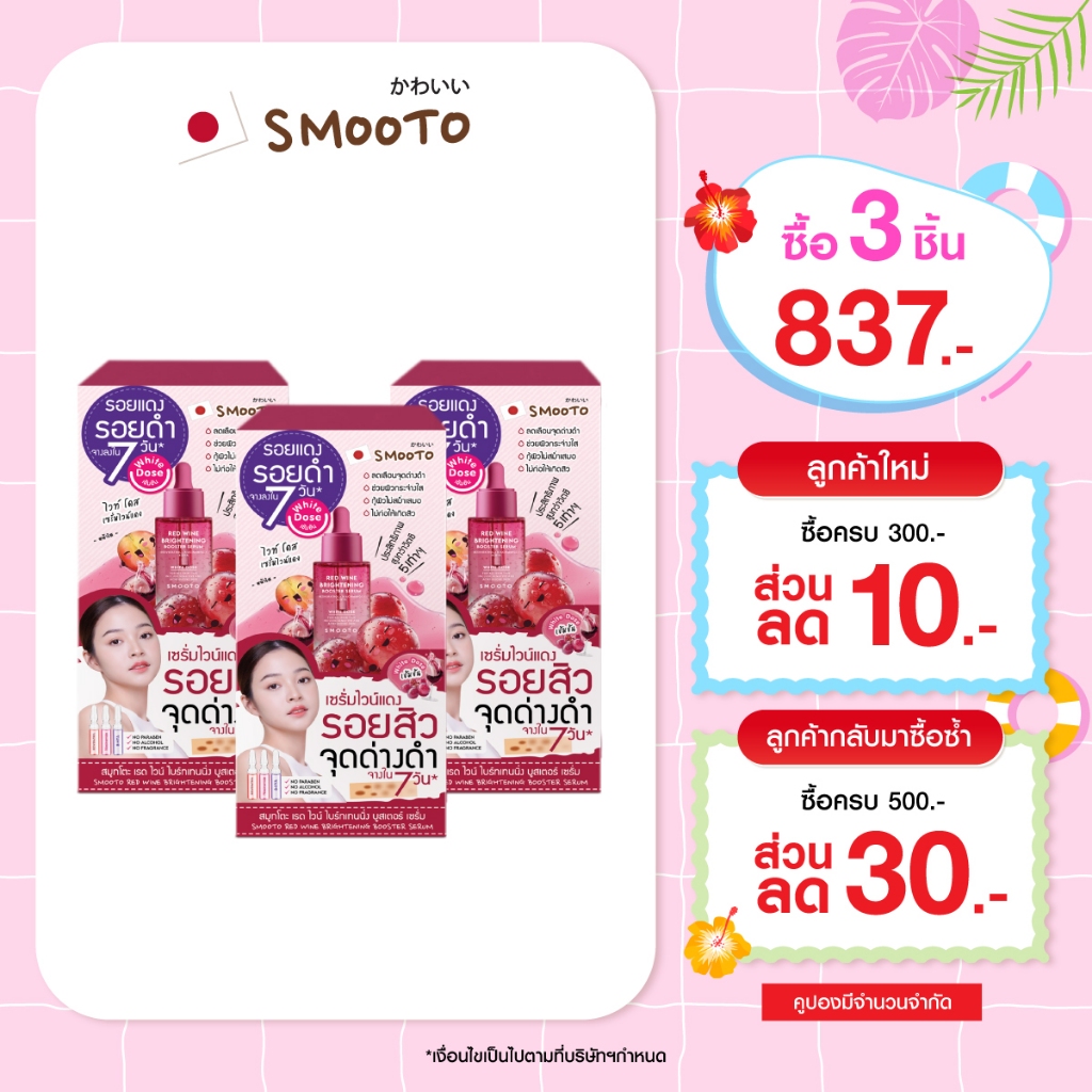 (ลดแร) SMOOTO Official สมูทโตะ เรด ไวน์ ไบร์ทเทนนิ่ง บูสเตอร์ เซรั่ ม (SMT139/กล่อง)