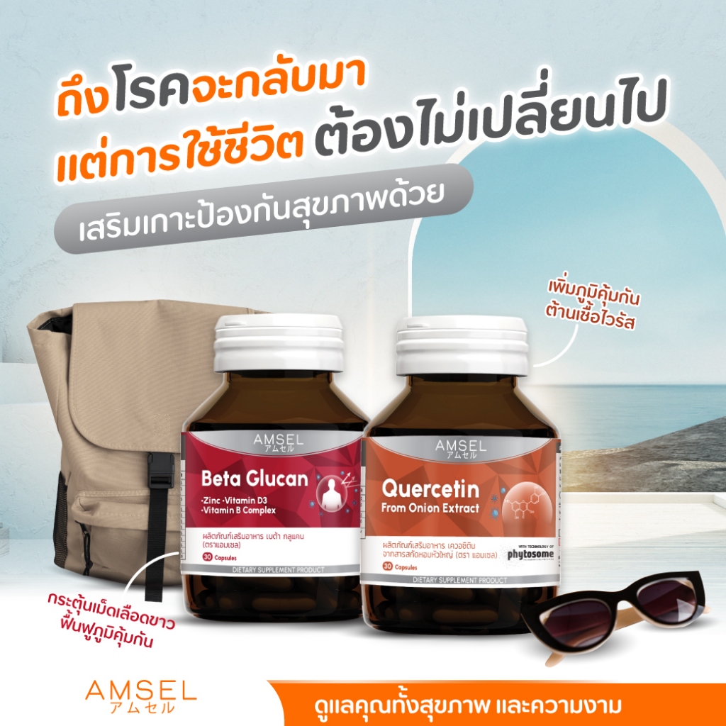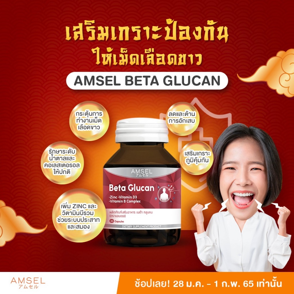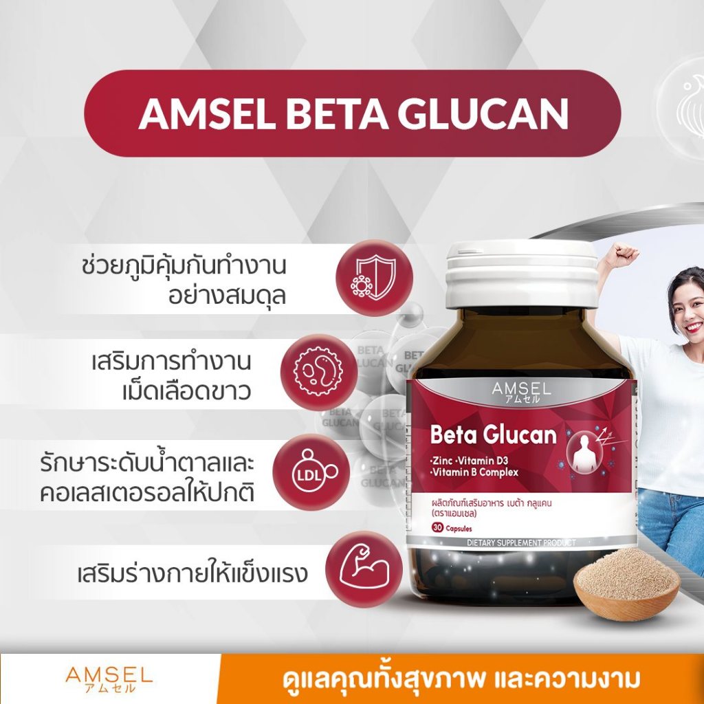 ((ของแท้ร้านยา)) Amsel Beta Glucan 30แคปซูลx2ขวด แอมเซล เบต้า-กลูแคน ช่วยเสริมภูมิคุ้มกัน