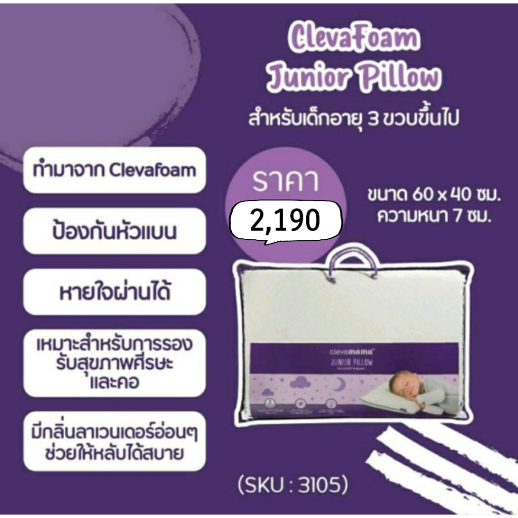 🔥แท้มีสติกเกอร์🔥ของแท้จากศูนย์ไทย🔥 Clevamama ClevaFoam™ หมอนกันหัวแบน หมอนทารก/ ปลอกหมอน / แท้ 100%
