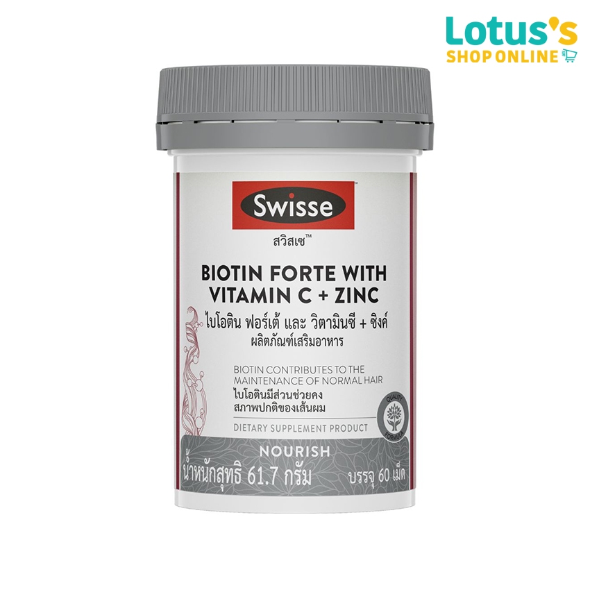 สวิสเซ ไบโอติน วิตามินซี+ซิงค์ 60 เม็ด SWISSE BIOTIN VITAMIN C+ ZINC 60 TABLETS