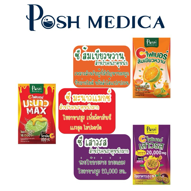 [ยกกล่อง1*6 ซอง] พอช เมดิก้า อาหารเสริม ไฟเบอร์ MC.Plus Fiber Posh Medica Fiber 16 รสชาติ