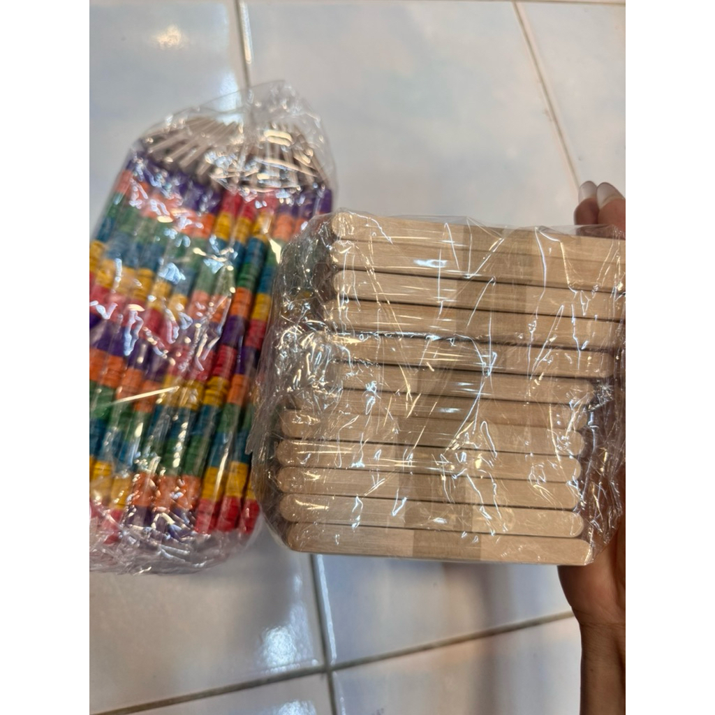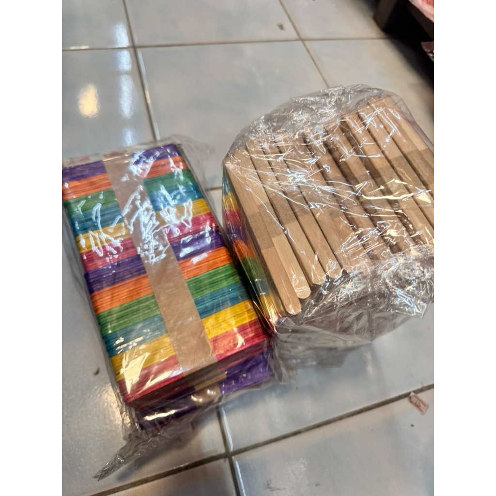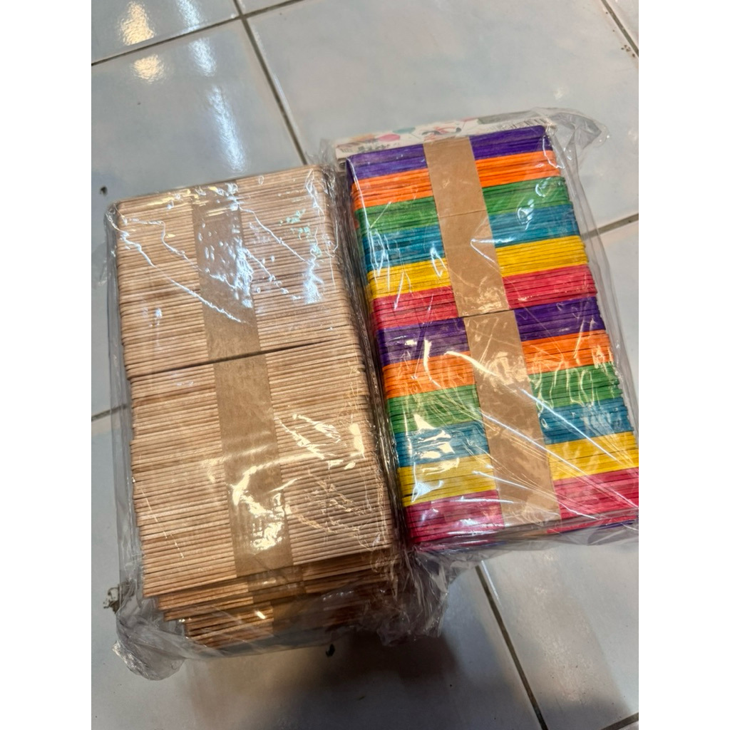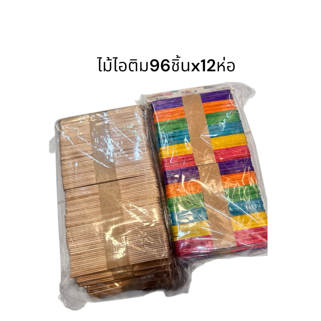 ไม้ไอติมไม้ธรรมชาติ + ไม้ไอติมสี 96 ชิ้น x 12 ห่อ (รวม 1,152 ชิ้น) ไม้ไอติมยาว 11.1 ซม.กับ2มล.