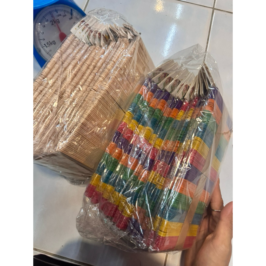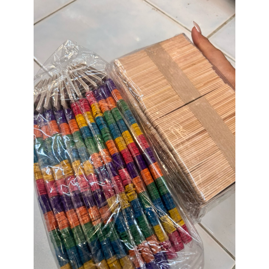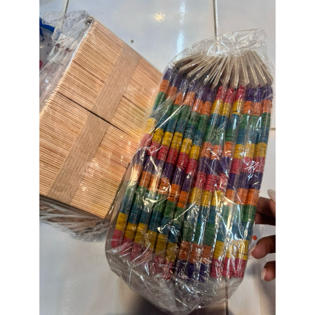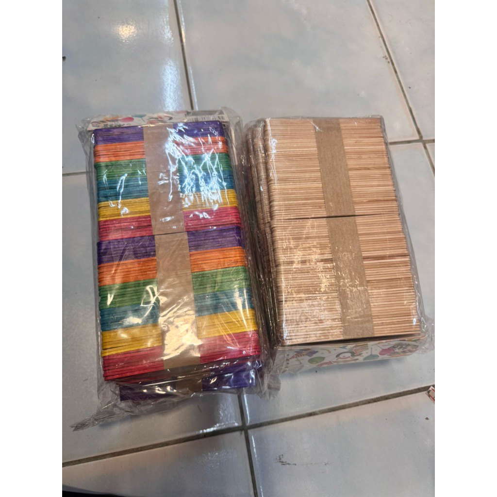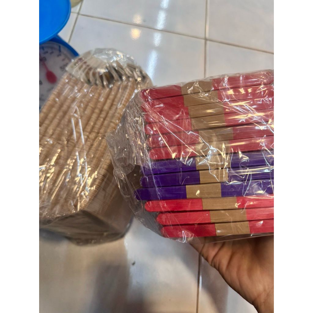 ไม้ไอติมไม้ธรรมชาติ + ไม้ไอติมสี 96 ชิ้น x 12 ห่อ (รวม 1,152 ชิ้น) ไม้ไอติมยาว 11.1 ซม.กับ2มล.