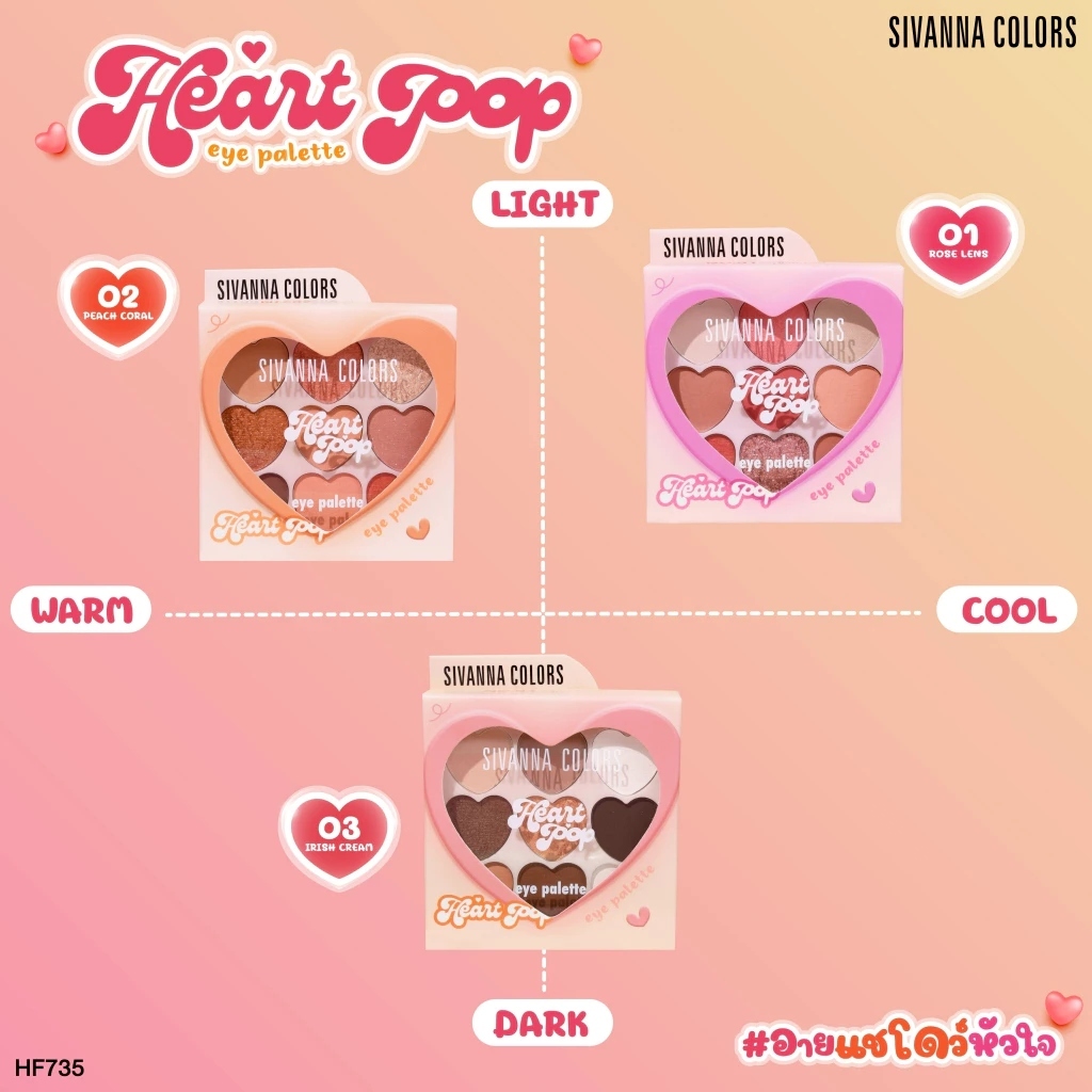 (1 ชิ้น) Sivanna Colors Heart Pop Eye Palette (HF735) ซีเวนน่า คัลเลอร์ส ฮาร์ท ป๊อป อาย (1.3 g.)