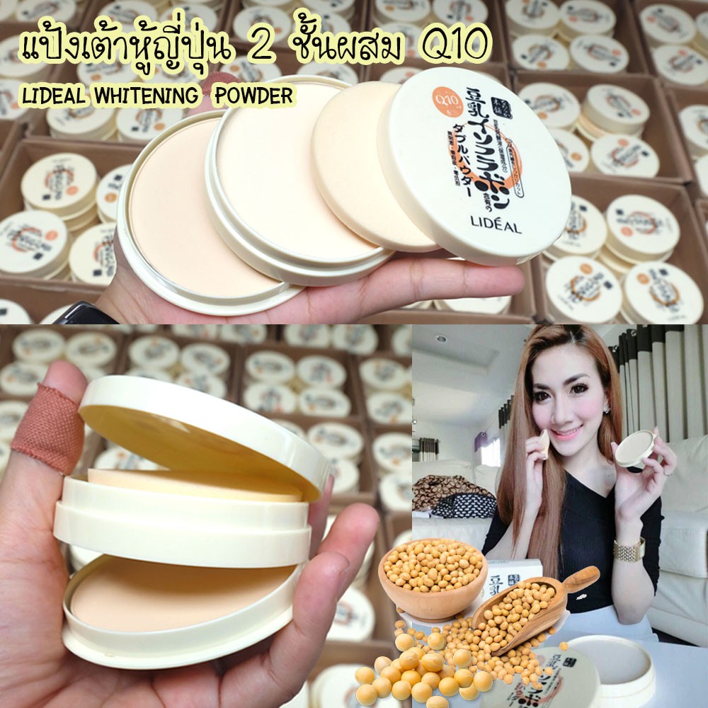 【รุ่น2ชั้น】Lideal แป้งเต้าหู้ แป้งพัฟ 2in1 ผสมQ10【คุมมัน ปกปิด กันน้ำ】Whitening Power Makeup 22g