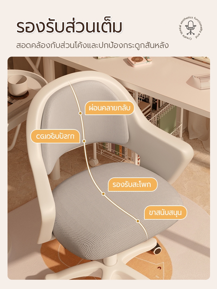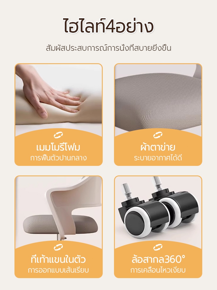 🔥สีดำ/สีขาว เก้าอี้สำนักงาน พนักพิงปรับได้ พนักพิงตาข่าย เบาะระบายอากาศ