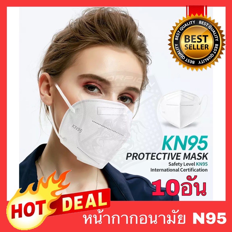 พร้อมส่ง🔥 N95 (10ชิ้น) หน้ากากอนามัย K08 กันฝุ่น PM2.5 สำหรับผู้ชาย และผู้หญิง (#K08) (สีขาวไม่มีวาล์ว)