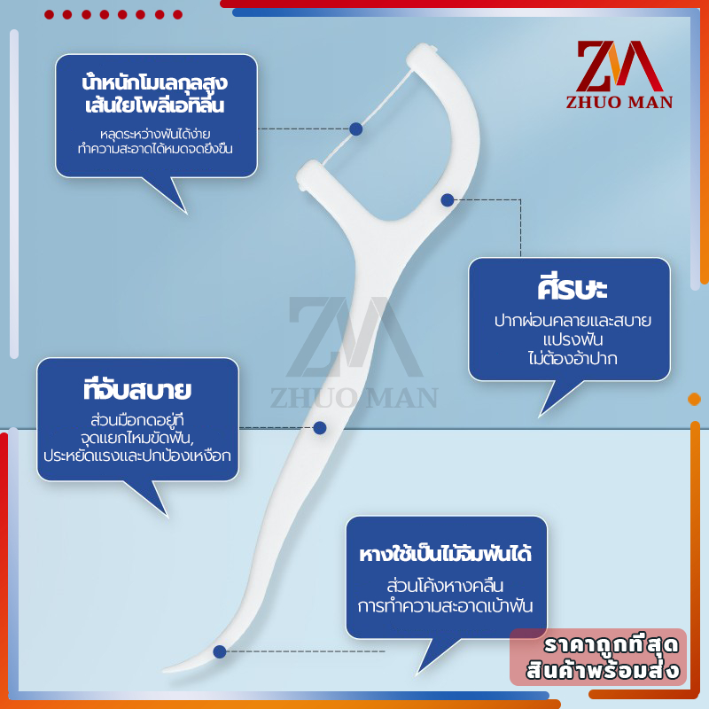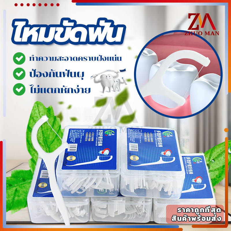 ไหมขัดฟัน ไหมขัดฟันชนิดด้ามพลาสติก50ชิ้น/กล่อง ไม้จิ้มฟัน/ใช้ขัดฟัน เขี่ยเศษอาหารตามซอกฟัน อุปกรณ์ทำความสะอาดช่องปาก