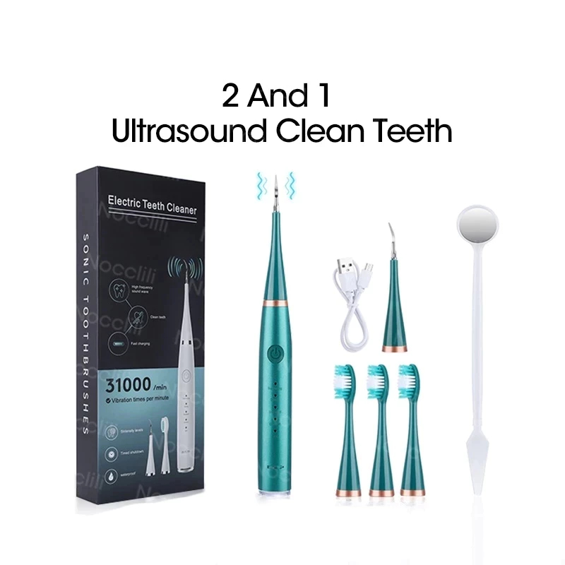 COD 2 ใน1 สมาร์ท เครื่องล้างฟันแบบอัลตราโซนิค เครื่องทำความสะอาดฟันไฟฟ้า ทำความสะอาดหินปูน การฟอกสีฟัน ชุดแปรงสีฟันไฟฟ้า