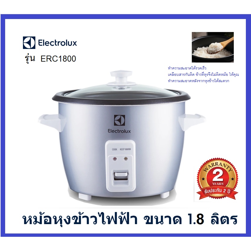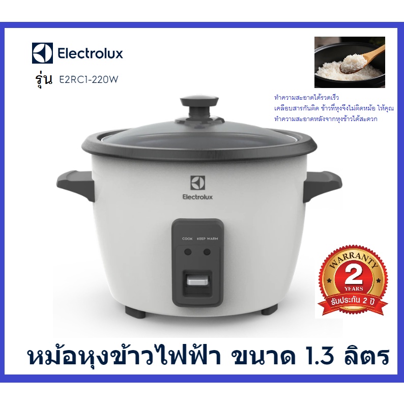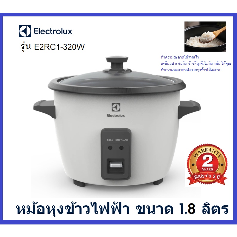Electrolux หม้อหุงข้าว 1.3 ลิตร รุ่น E2RC1-220W(สีขาว) /ขนาด1.8ลิตร รุ่น E2RC1-320W (สีขาว)/ขนาด 1.8 ลิตร ERC1800 สีเงิน