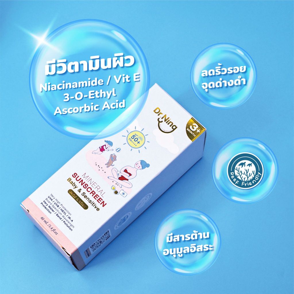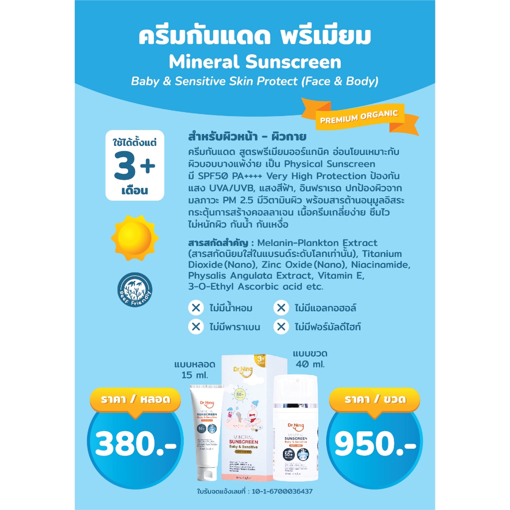 Dr.Ning Mineral Sunscreen Baby&Sensitive Skin Protect ครีมกันแดด สำหรับเด็ก 3 เดือนขึ้นไป ขวดละ 40ml