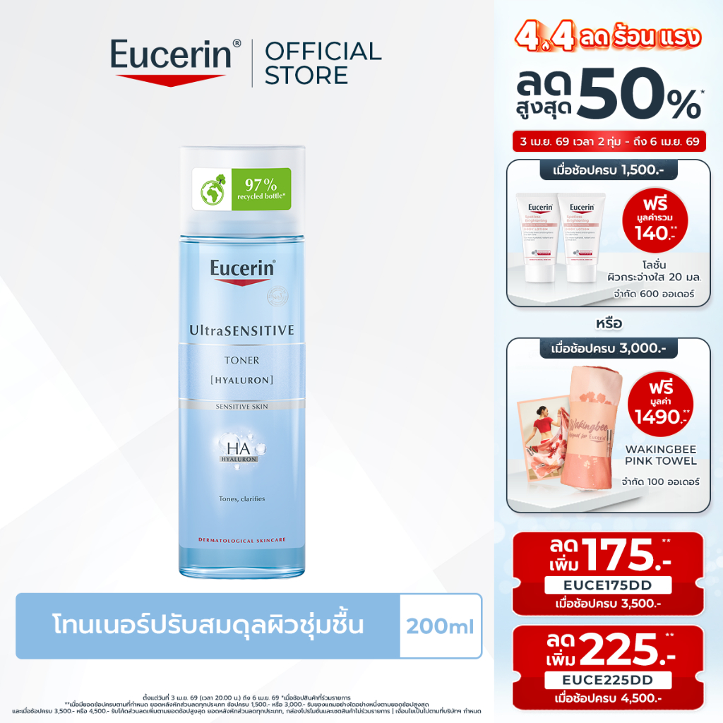 Eucerin UltraSENSITIVE [HYALURON] TONER 200 ML ยูเซอริน โทนเนอร์ปรับสมดุลผิว ผสานไฮยาลูรอน เติมความชุ่มชื้น
