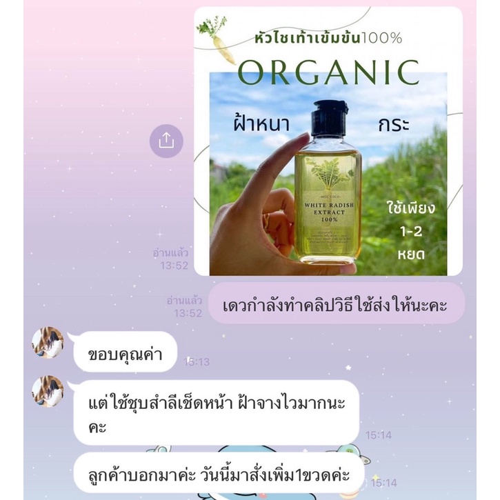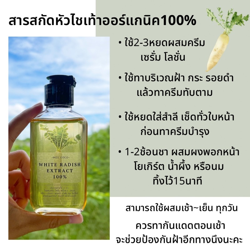 หัวไชเท้าออร์แกนิคสกัดเย็น100% เช็ดฝ้าก่อนทาครีม ผสมครีม สลายฝ้ากระ