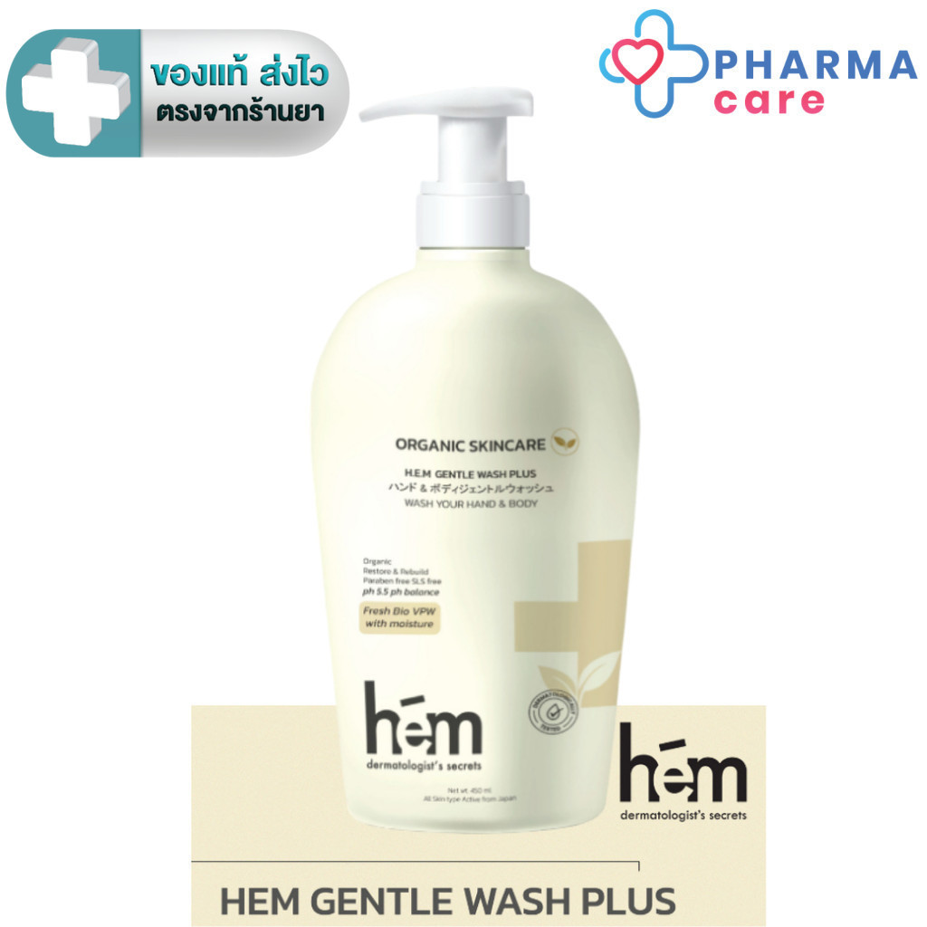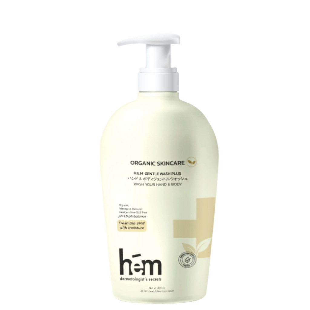 H.E.M Gentle Wash Plus ครีมอาบน้ำ ทำความสะอาดผิวกาย เอช.อี.เอ็ม. เจนเทิล วอช พลัส 450 ml. [PC]