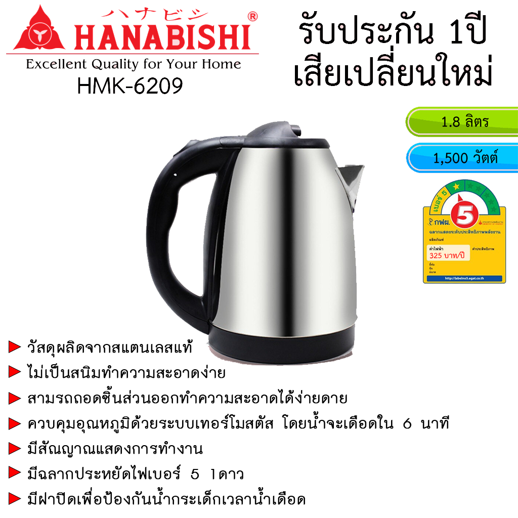 HANABISHI กาน้ำไฟฟ้า 1.8 ลิตร รุ่น HMK-6209