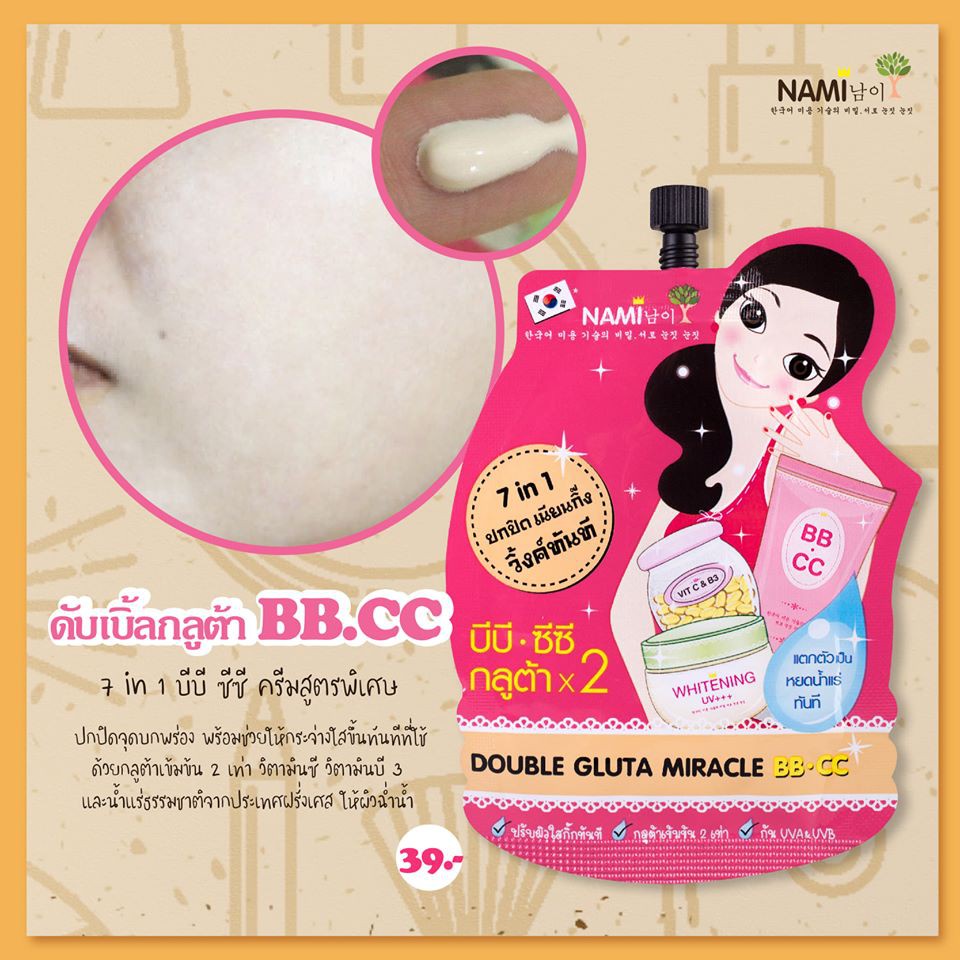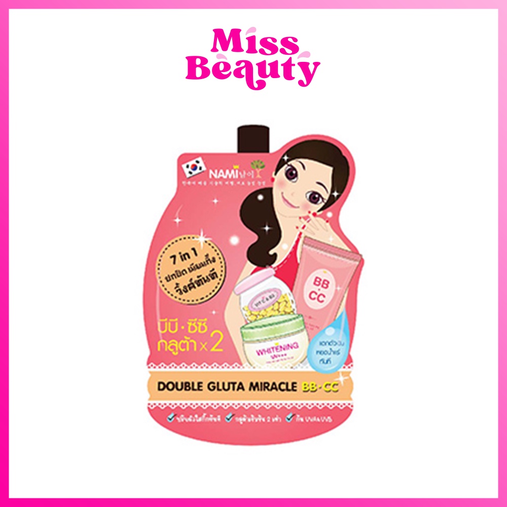 (1 ซอง) Nami 7in1 Double Gluta Miracle BB CC นามิ 7in1 ดับเบิล กลูต้า มิราเคิล บีบี ซีซี ซอง 7 กรัม