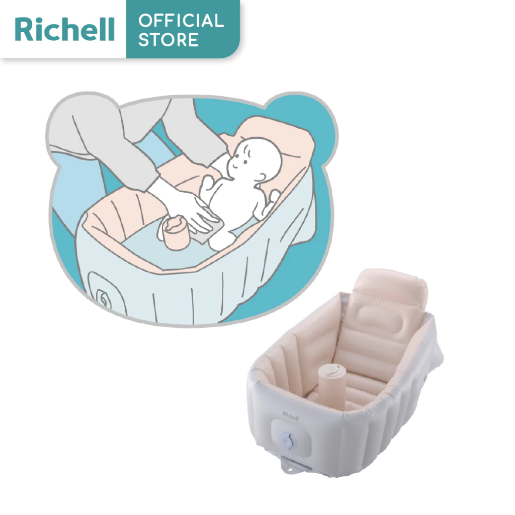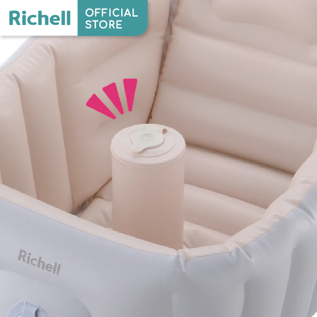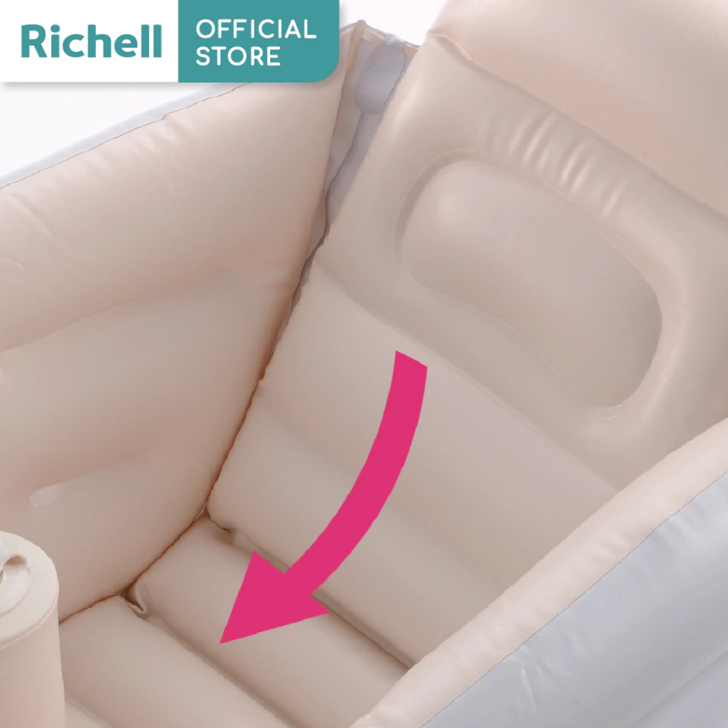 Richell(ริเชล) อ่างอาบน้ำสำหรับเด็กทารก ปั๊มลมและพับเก็บได้ พร้อมที่ช่วยพิงหลัง