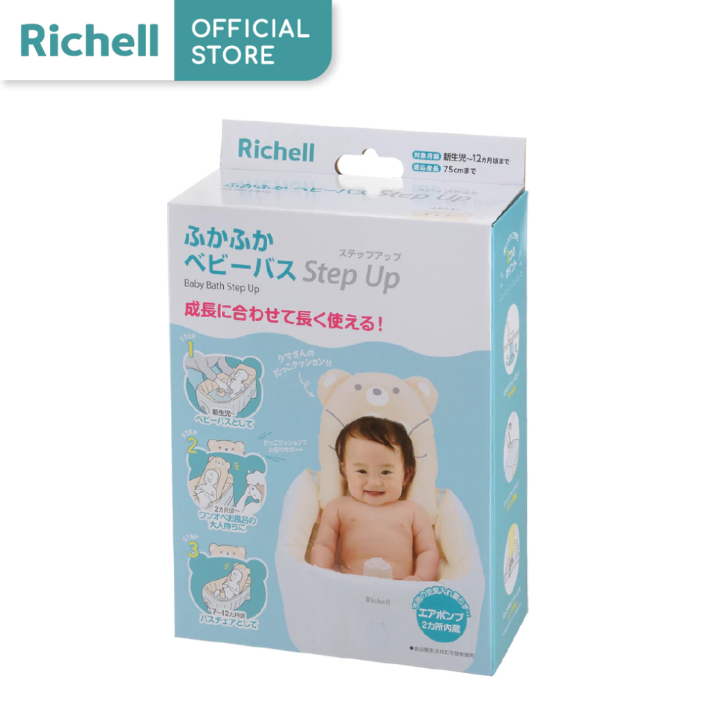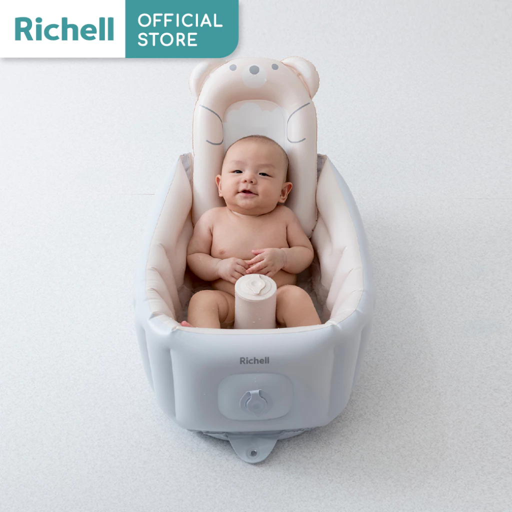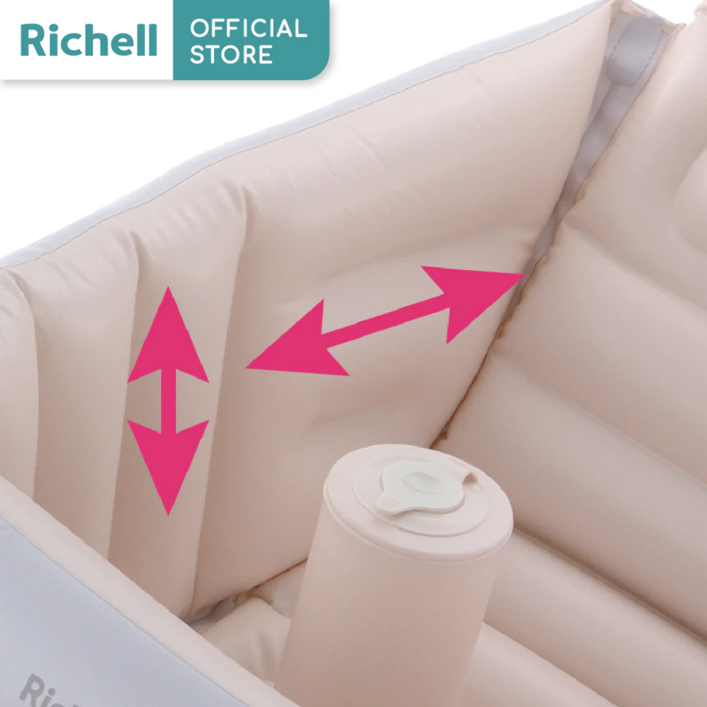 Richell(ริเชล) อ่างอาบน้ำสำหรับเด็กทารก ปั๊มลมและพับเก็บได้ พร้อมที่ช่วยพิงหลัง