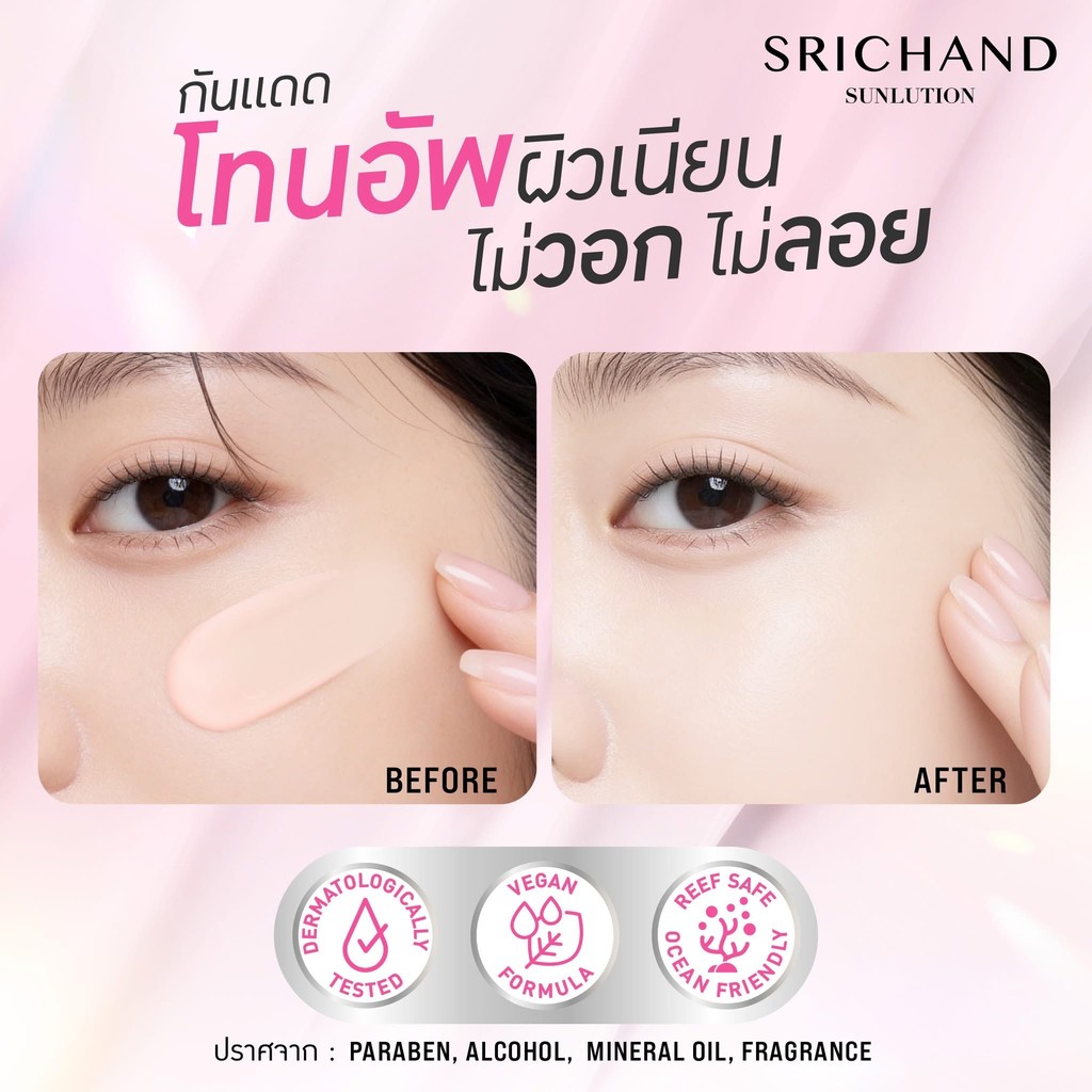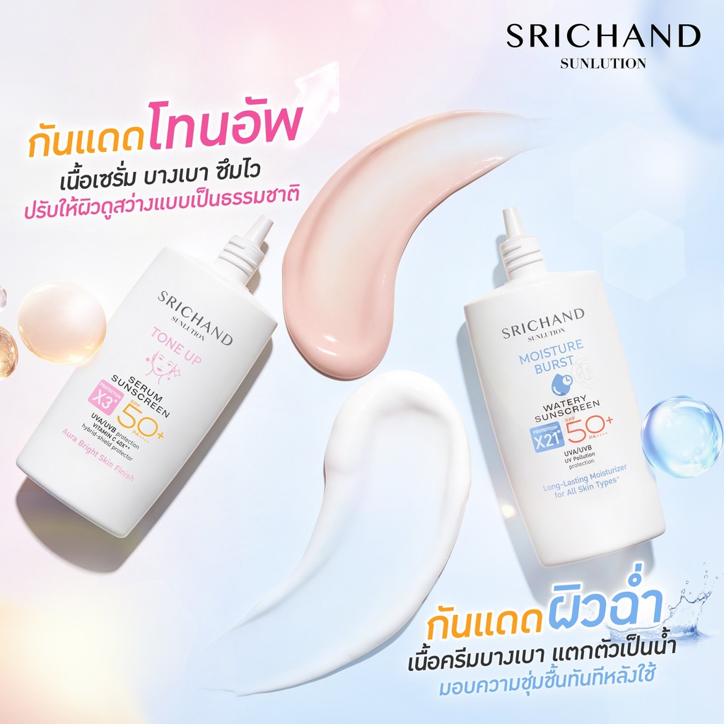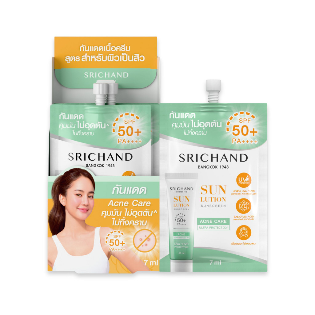 (กล่องx6) Srichand ศรีจันทร์ กันแดด ซันลูชั่น แอคเน่/โรเซีย/ไวท์เทนนิ่ง ซันสกรีน SPF50 Srichand Sunlution Suncreen 7มล.