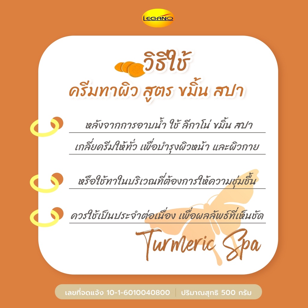 ครีมทาผิว สูตรขมิ้นสปา 500 กรัม ลีกาโน่