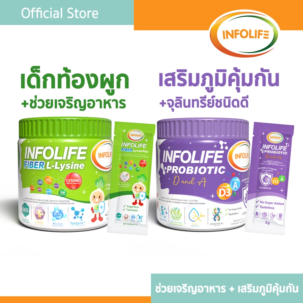 (2 กระปุก) อินโฟว์ไลฟ ไฟเบอร์ แอล-ไลซีน+ โพรไบโอติกส์ ดีแอนด์เอ เสริมภูมิคุ้มกัน แก้ท้องผูก กินเก่ง สำหรับเด็ก ส่งฟรี