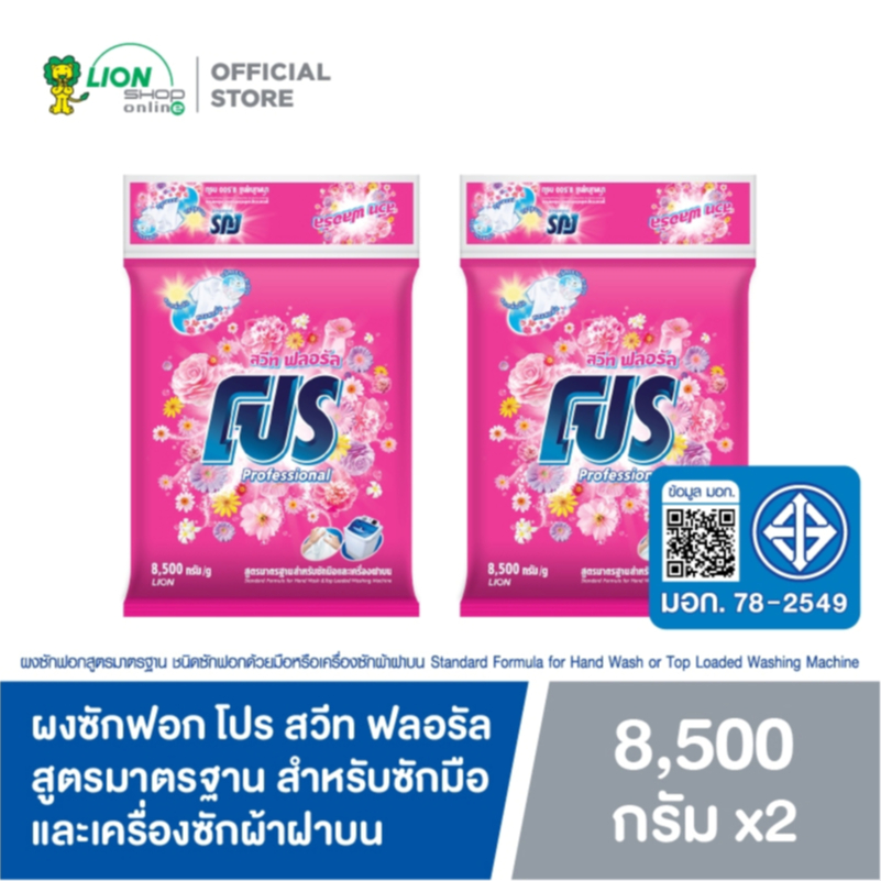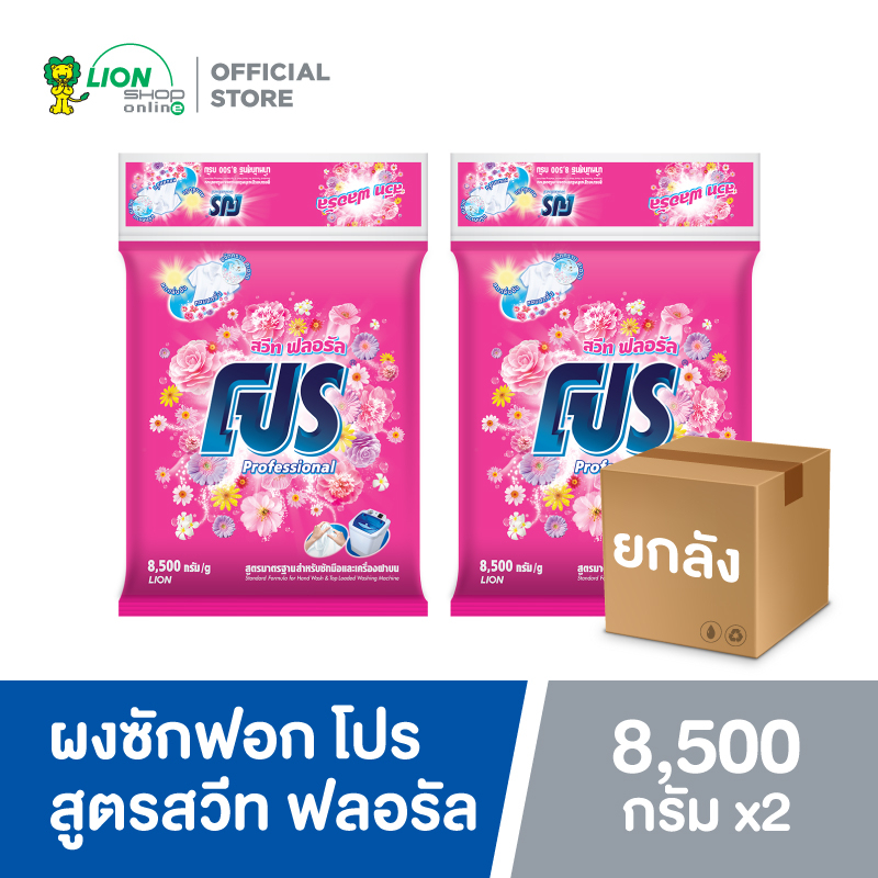 [ยกลัง] PRO ผงซักฟอก โปร Sweet Floral สวีท ฟลอรัล สูตรมาตรฐาน สำหรับซักมือและเครื่องซักผ้าฝาบน 8.5 kg 2 ถุง